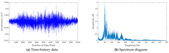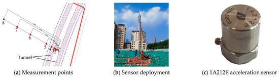 The acceleration signals used in this study were obtained from data collected by Wang et al. [33], who investigated subway-induced vibrations and the influence on nearby building structures. Acceleration sensors, type 1A212E, and a DH8303 dynamic signal testing and analysis system were employed for data measurement. The sampling frequency was set to 1000 Hz, which is sufficiently high to cover the full spectrum of subway-induced vibration frequencies. This configuration ensured that the collected signals comprehensively represented the vibrational impact of subway operations on the surrounding environment, providing high-quality data for subsequent analyses.