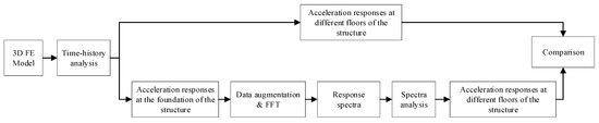 The response spectra derived from the excitation signals are used as input for the spectral analysis. The spectral analysis is conducted to calculate the maximum acceleration responses of the structure.