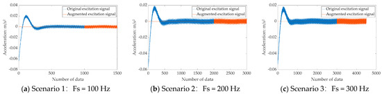Comparison of time-history data of original excitation signal and augmented excitation signal.