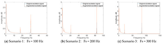 Comparison of frequency spectrum of original excitation signal and augmented excitation signal.