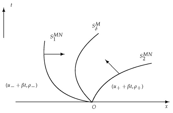 - The shock satisfies the generalized Rankine–Hugoniot conditions, represents :where and represent the weight and velocity of shock waves respectively, . It can be derived from Equation (9).
