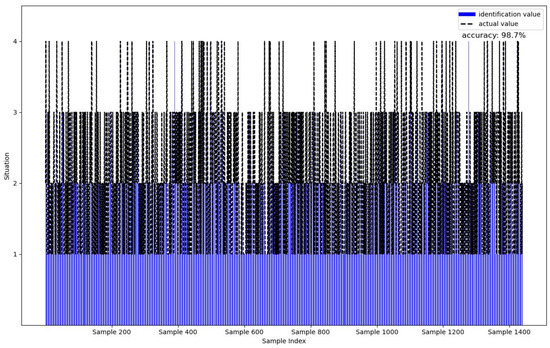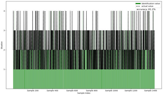 The identification results based on this model and the traditional random forest model are compared with the expert assessment results, as shown in Figure 8 and Figure 9. Figure 8 shows the identification results of this method, with an identification accuracy of 98.7%. Figure 9 shows the identification results based on the traditional random forest model in Python, with an identification accuracy of 81.2%. Compared with the traditional random forest model, the identification accuracy of this model is improved by 17.5%.