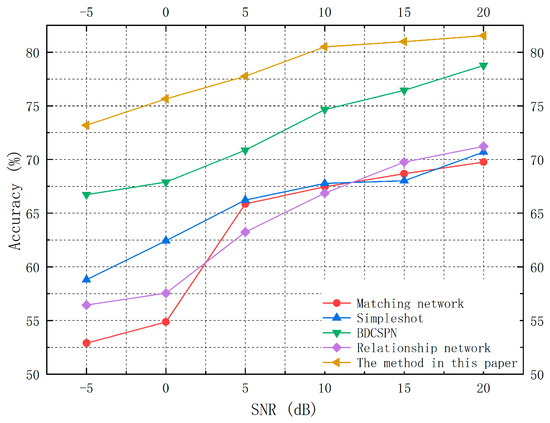 3.3.2. Comparative Experiments on Small-Sample Recognition Methods Under Different Signal-to-Noise Ratios