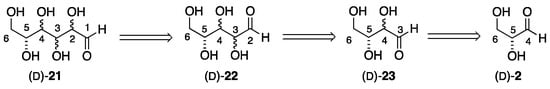 - Cuccarese, M.F.; Li, J.J.; O’Doherty, G.A. De Novo Approaches to Monosaccharides and Complex Glycans in Modern Synthetic Methods in Carbohydrate Chemistry; Werz, D.B., Vidal, S., Eds.; Wiley-VCH Verlag GmbH & Co. KG: Weinheim, Germany, 2014; pp. 1–28. [Google Scholar]
