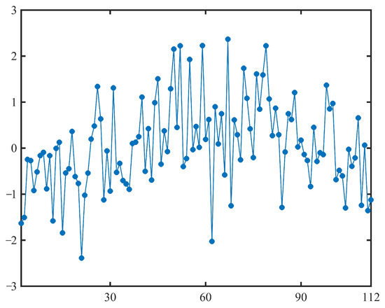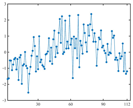 By substituting the estimated , , and into (24), we can obtain 111 samples of the standard normal random distribution function , as shown in Table 8 and Figure 7.
