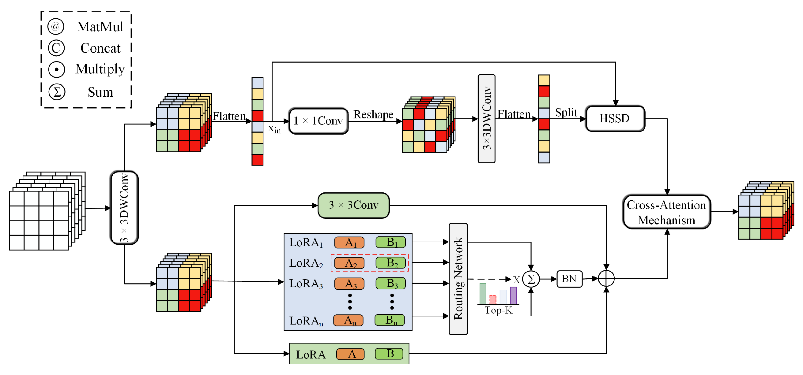 39] employs a hierarchical architecture with a shifted window attention mechanism, enabling strong multiscale representation learning and delivering robust performance across diverse vision tasks. MTLoRA [