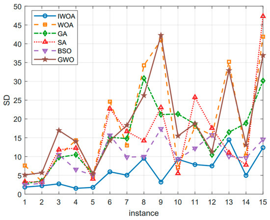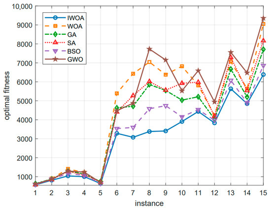 The experimental results (Table 8, Table 9 and Table 10 and Figure 13 and Figure 14) serve as empirical validation of the algorithm’s scalability and efficiency. The computation time (t/s) increases at a manageable, polynomial rate with problem size (from small 25-customer instances to large 200-customer ones), demonstrating its practical applicability to large-scale problems. Furthermore, the consistently lower objective values and standard deviations across all instances indicate that the IWOA not only finds better solutions but does so more reliably than its counterparts.