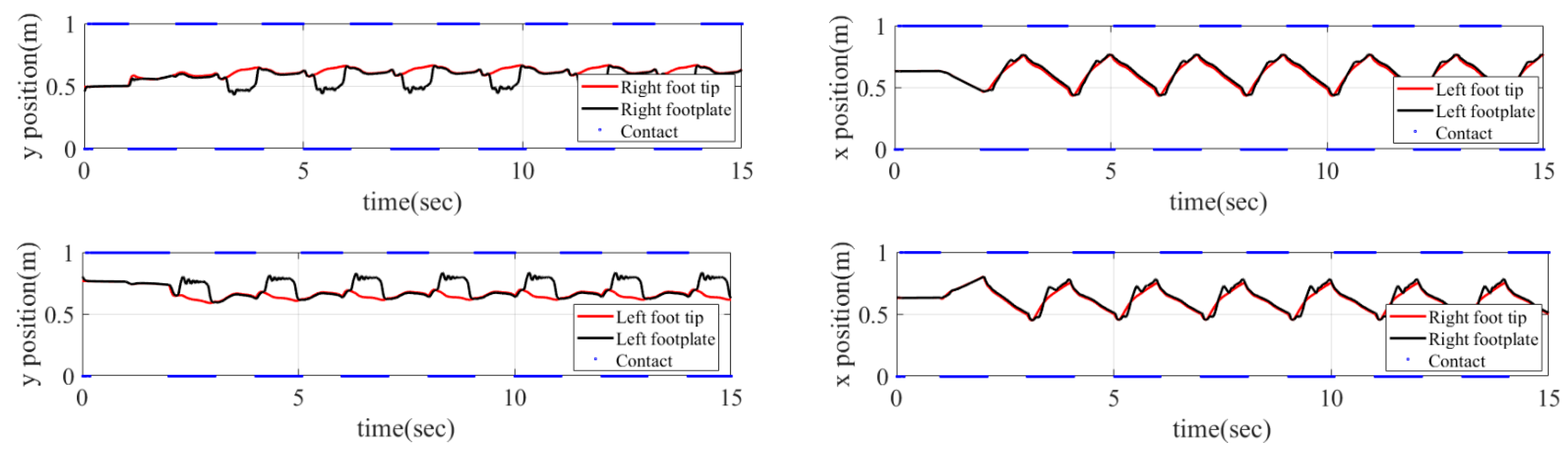 - It is assumed that the robotic ODT has real-time information on the foot tip positions of the humanoid model. In practical applications, this data can be obtained through inertial measurement unit (IMU) or motion capture (MOCAP) techniques [19].