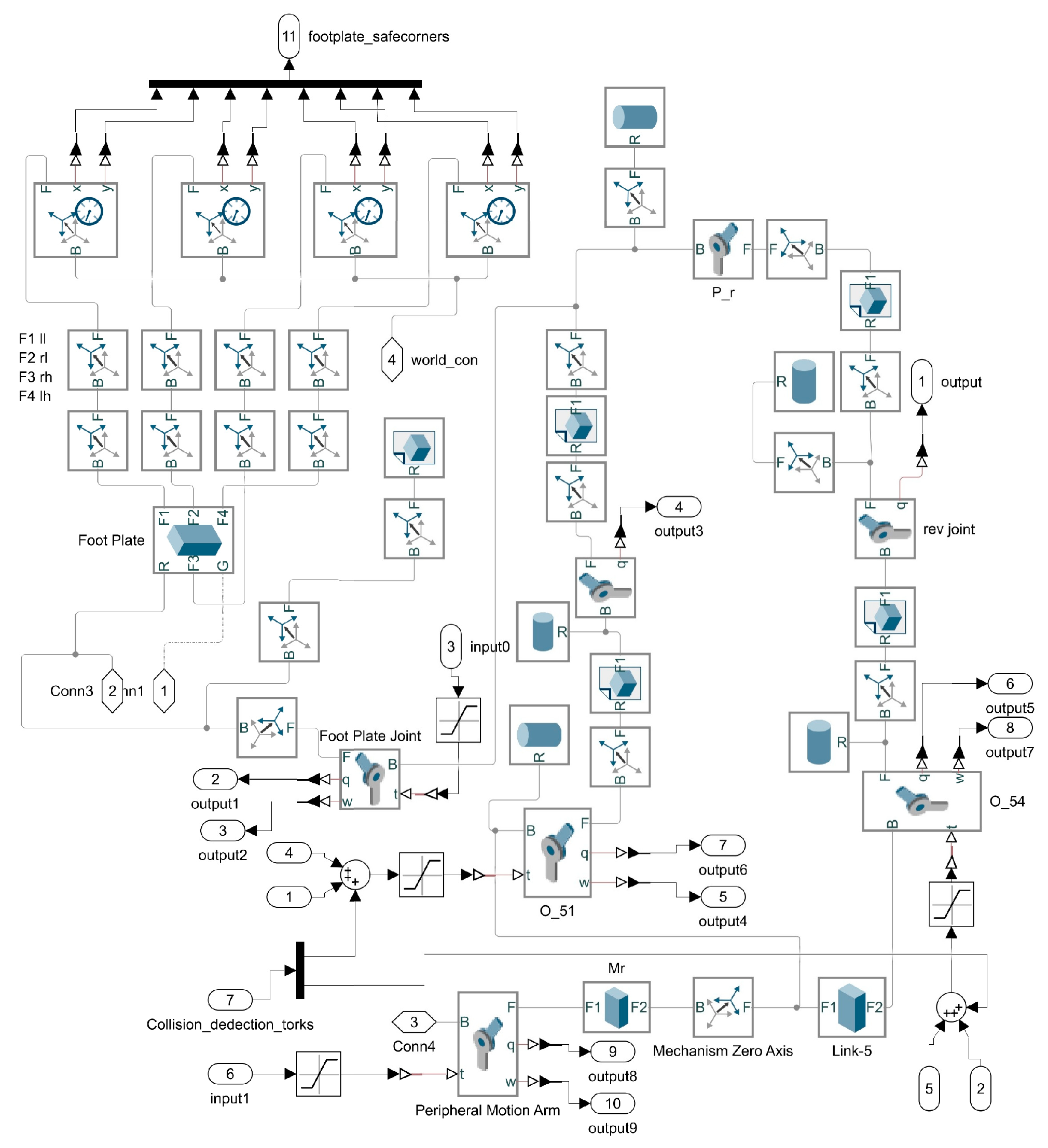 - A no-slip condition is assumed at the contact interface. In the simulation, where the humanoid foot is modeled with a point contact, this condition is enforced by applying a sufficiently high coefficient of friction to prevent tangential sliding under the calculated ground reaction forces. This is a practical idealization, as the physical footplate is envisioned to be coated with a high-friction, rubber-like material, which would make slip a rare event during normal walking gaits.