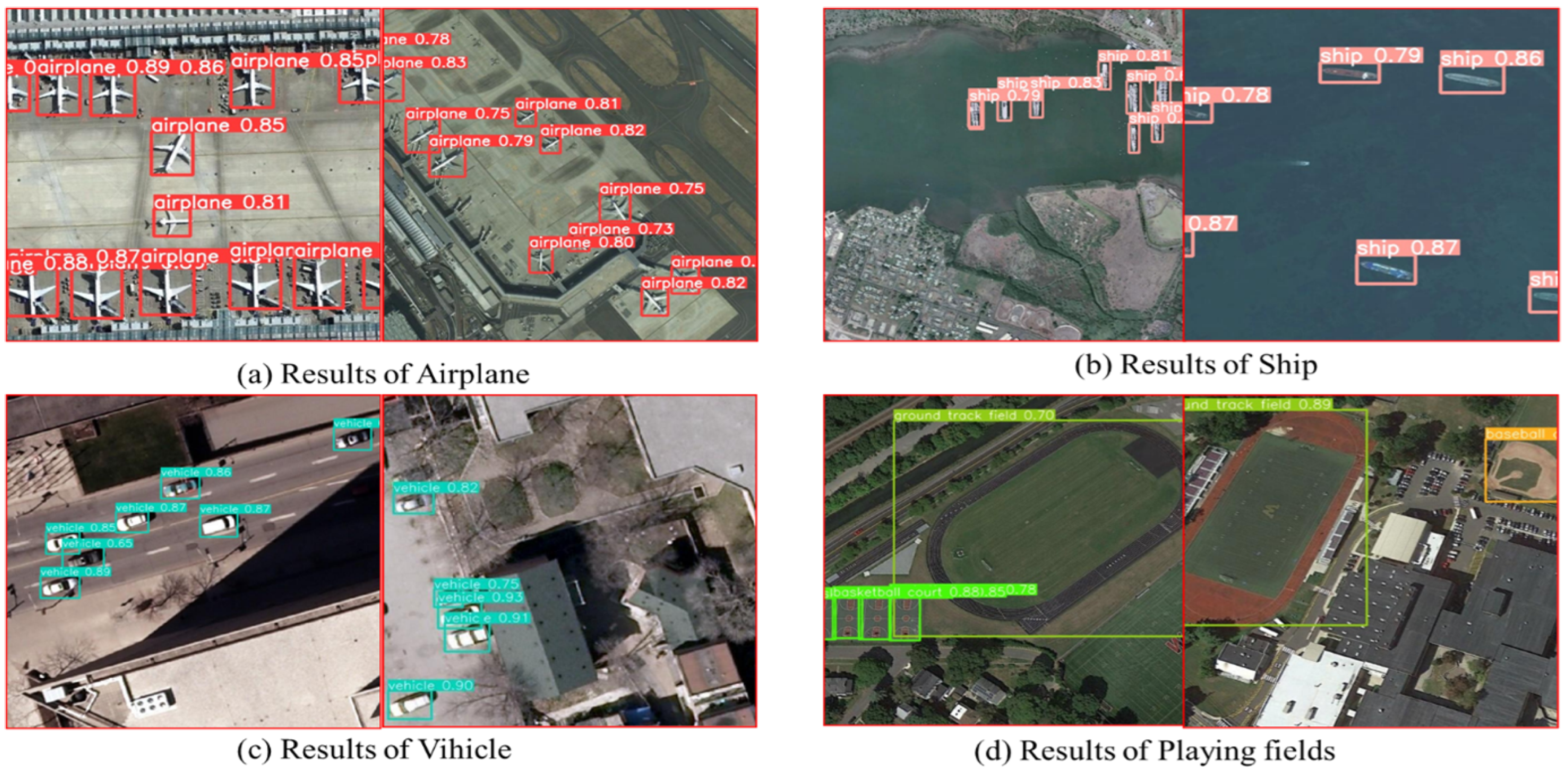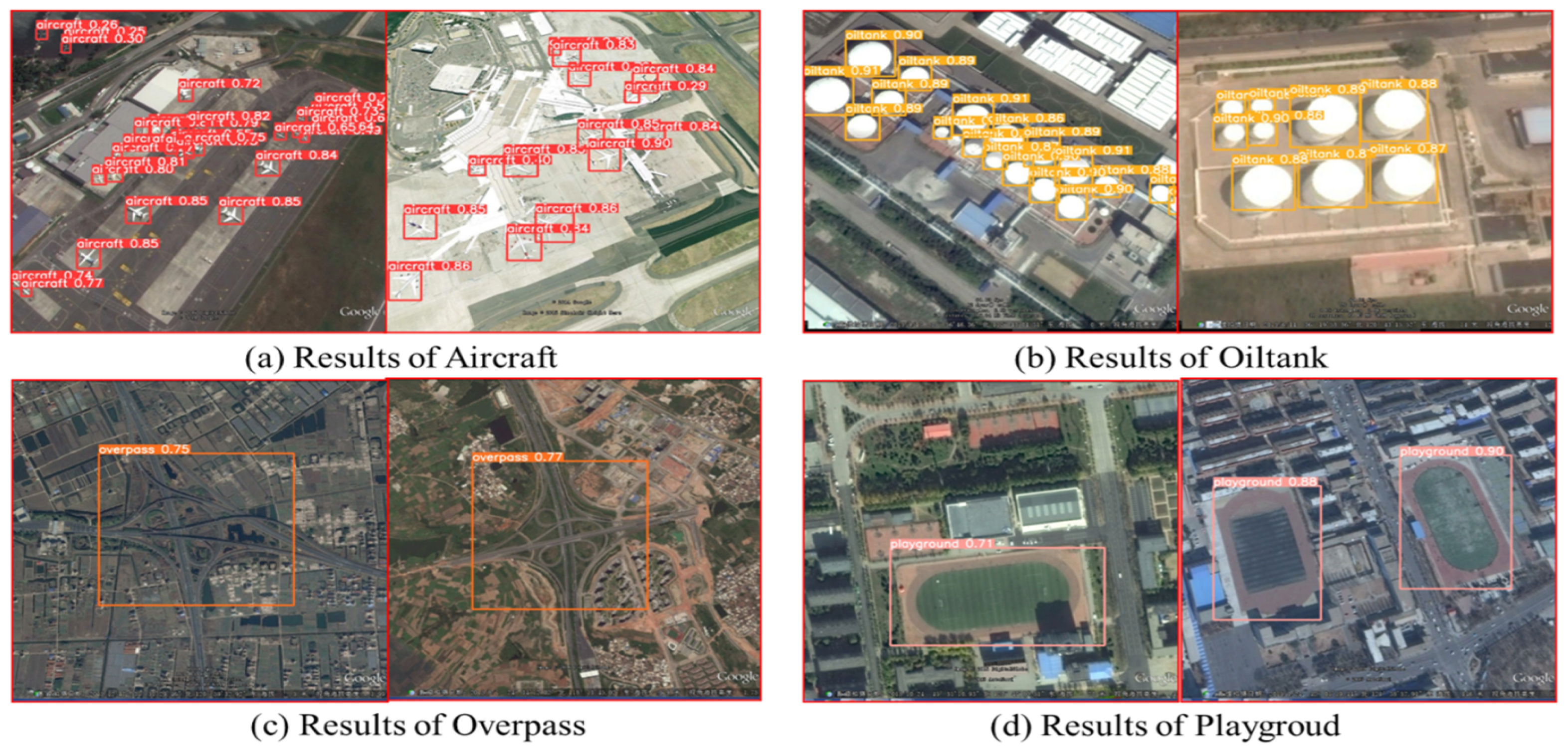 Figure 2 show excellent performance in the detection tasks of four types of typical remote sensing targets. For example, for the aircraft detection in