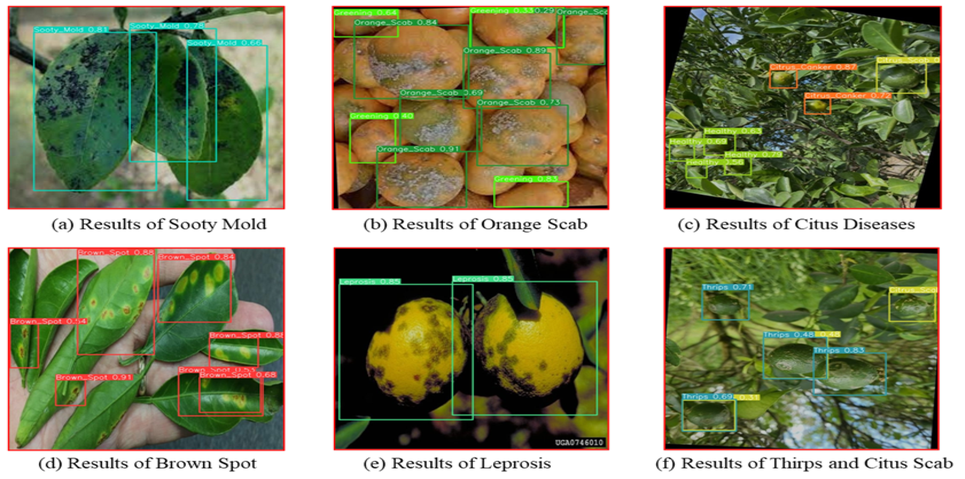 Figure 4a), even when leaves overlap with each other, the algorithm can still accurately locate pest-infested areas through its feature extraction and target inference mechanisms. By integrating contextual associations and deep semantic feature analysis, it verifies strong robustness under complex spatial relationships.