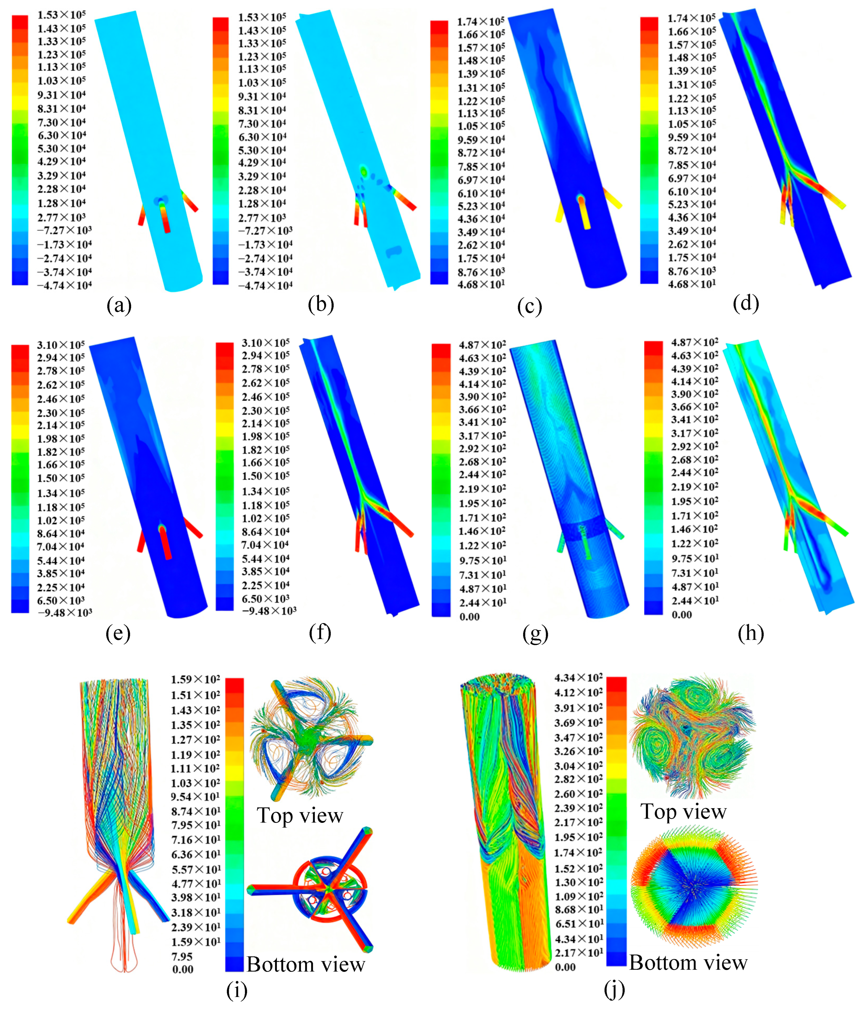 5.2. The Influence of the Number and Distribution Pattern of the Inner Jet Holes on the Reverse Circulation Performance Formed by the Inner Jet Holes-Type Reverse Circulation Drill Bit