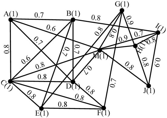The weakest links to enhance the network’s overall reliability. Based on the reliability analysis, the minimum reliability value is addressed, and the cycles , and are the weakest link among the overall network.