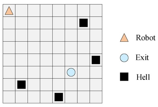 RL algorithms are defined as learning to maximize cumulative rewards and make a series of optimal decisions in a given environment through the interaction between an agent and the environment [29,30]. The problem to be solved in the RL algorithm is described as an MDP. An MDP is defined as , where represents the state space, represents the action space, is the state transition probability matrix, represents the reward functions, is a discount factor, . The RL algorithm consists of three elements: states, actions, and rewards. The policy is a function of the agent’s behavior, .