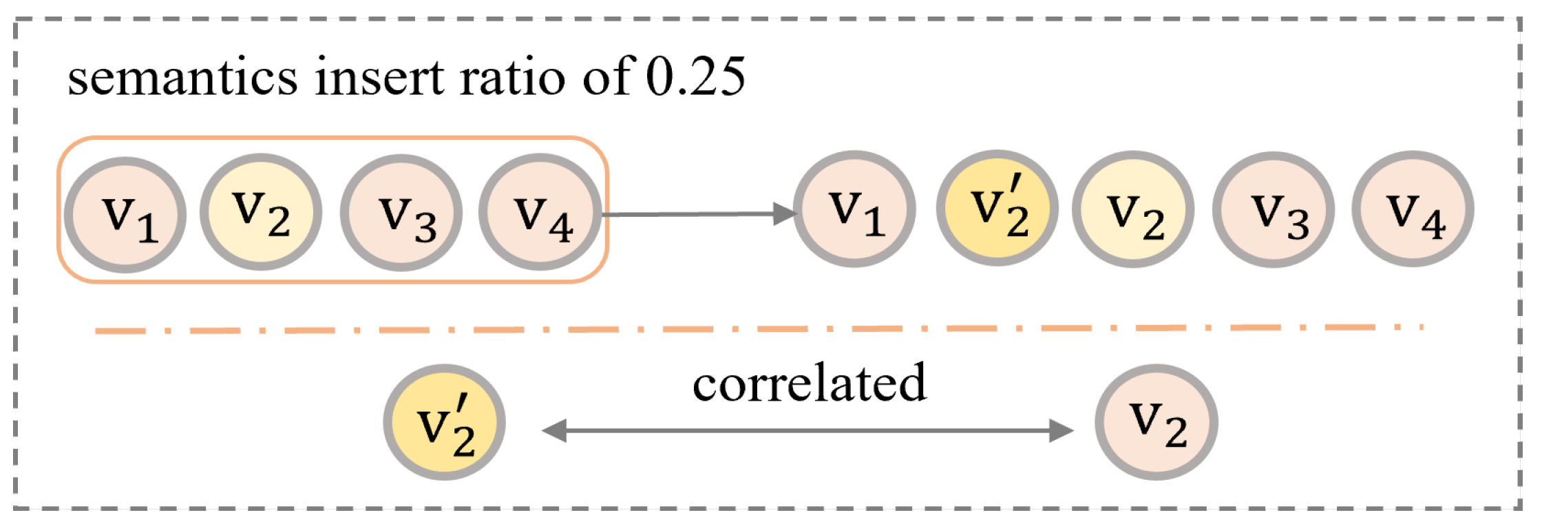 - In terms of data augmentation, a semantic enhancement module based on user preferences is designed to improve existing random augmentation methods. On one hand, two semantic augmentation operators—semantic replacement and semantic insertion—are proposed. By incorporating user rating factors during augmented view construction, these operators generate enhanced sequences that better align with user preferences. On the other hand, a hyperparameter is introduced to dynamically distinguish between long and short sequences, controlling the supplemental intensity of additional self-supervised signals to the original user interaction sequence. This effectively mitigates sequence length skewness, thereby improving the confidence of positive sample pairs.