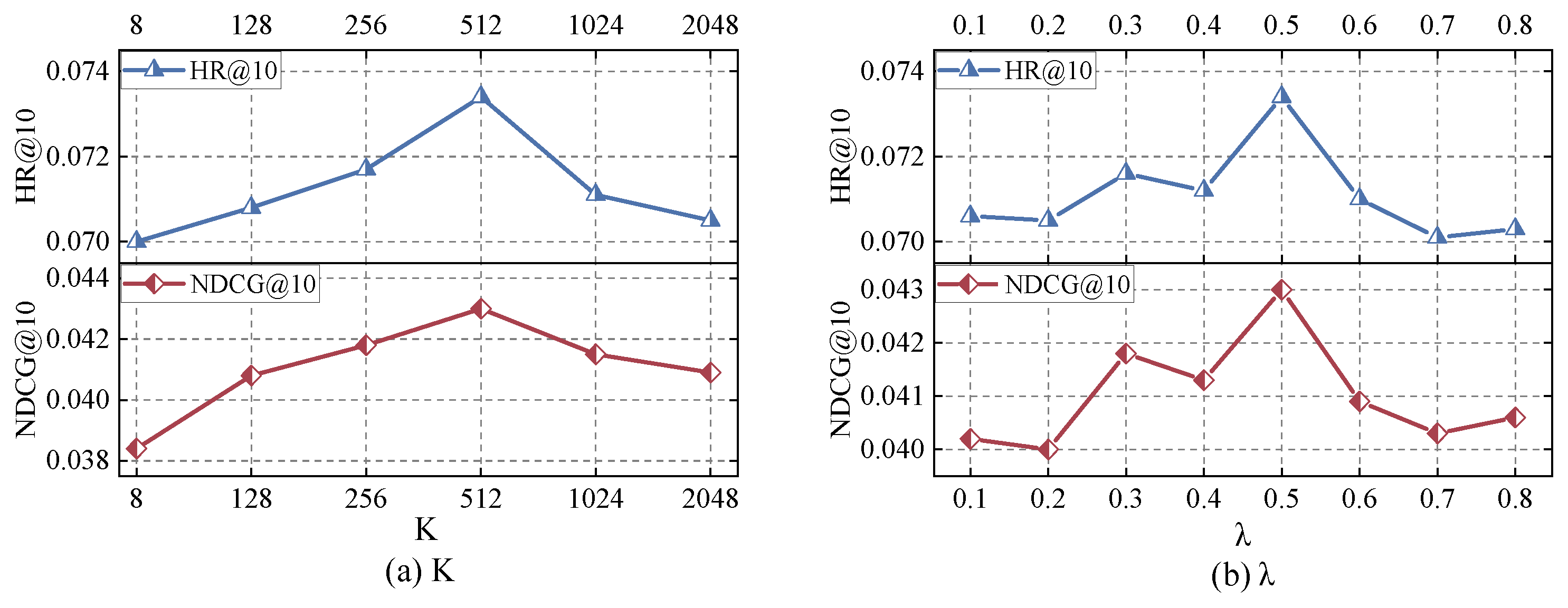 | HR@10 | 0.0668 | 0.0723 | 0.0717 | 0.0719 | 0.0734 | |