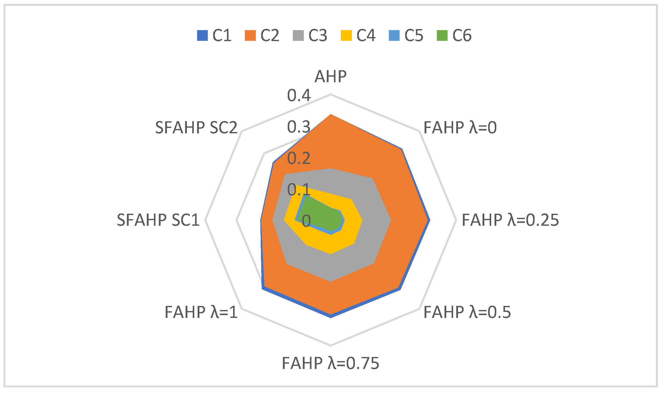 4.2. Results for the AHP, FAHP, and SFAHP Algorithms