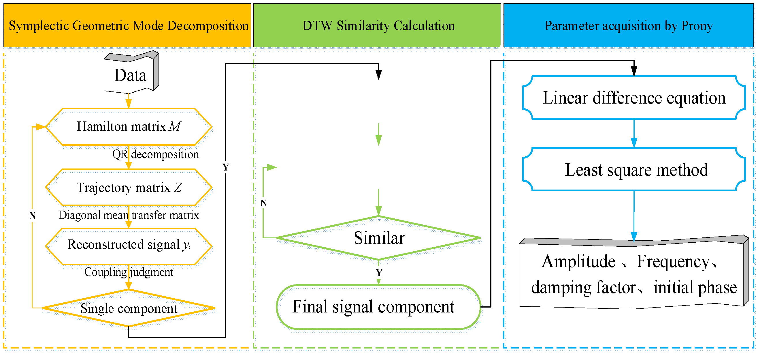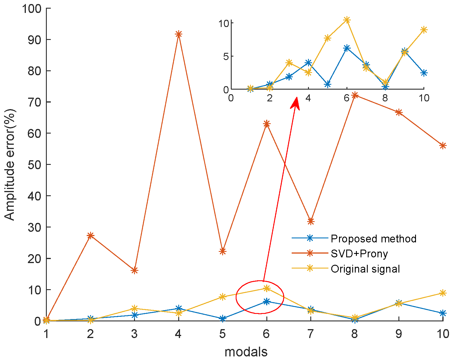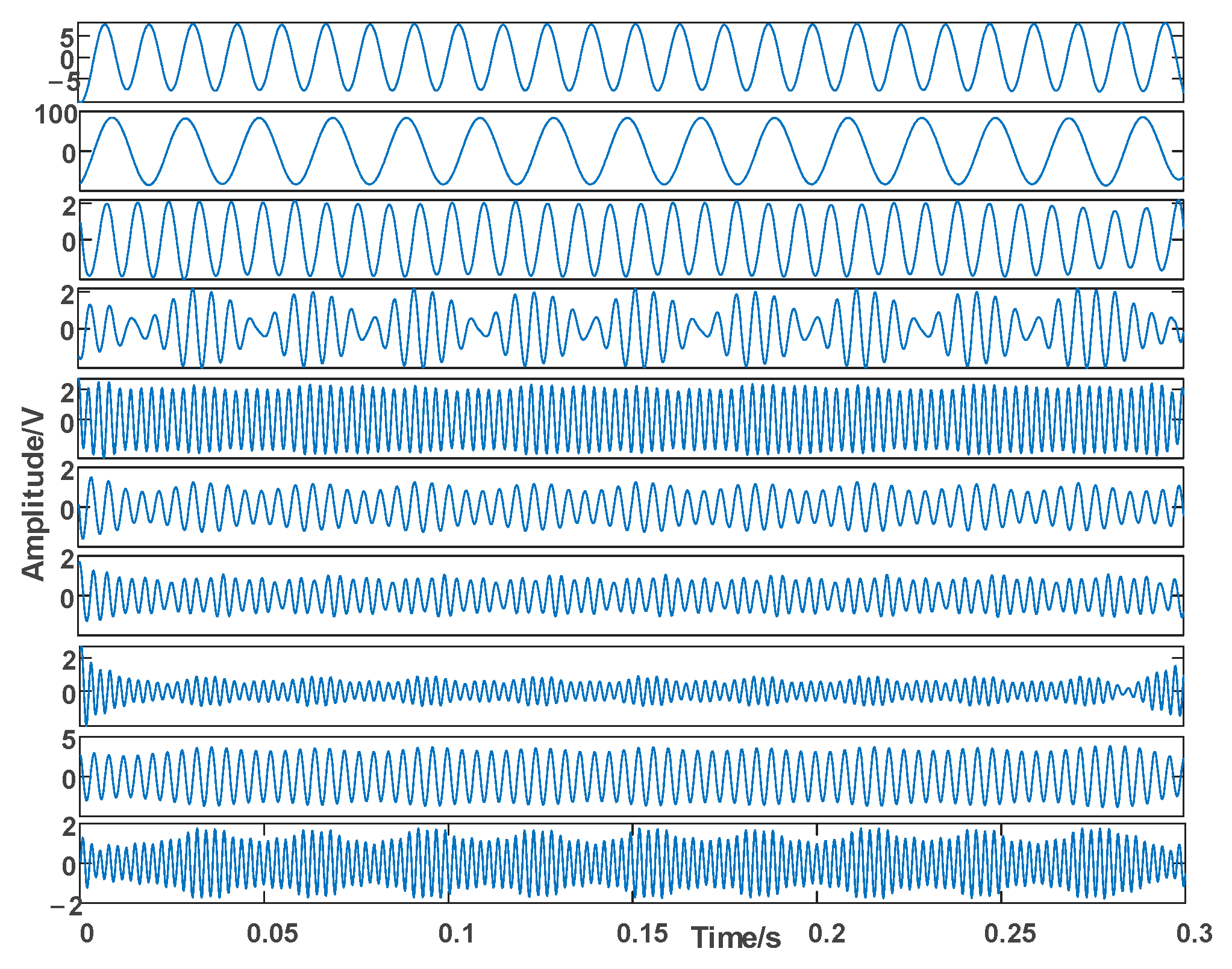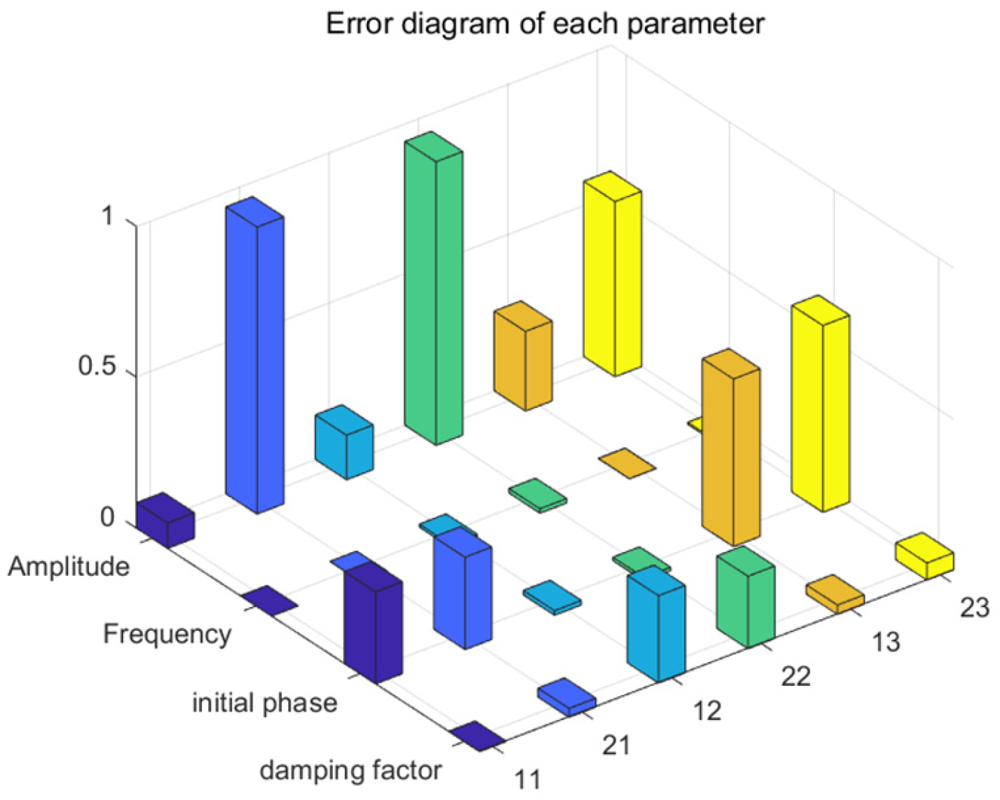 - The real harmonic component is reconstructed, and the reconstructed signal is identified by the Prony algorithm to obtain the amplitude, frequency, initial phase, and damping factor of the signal.