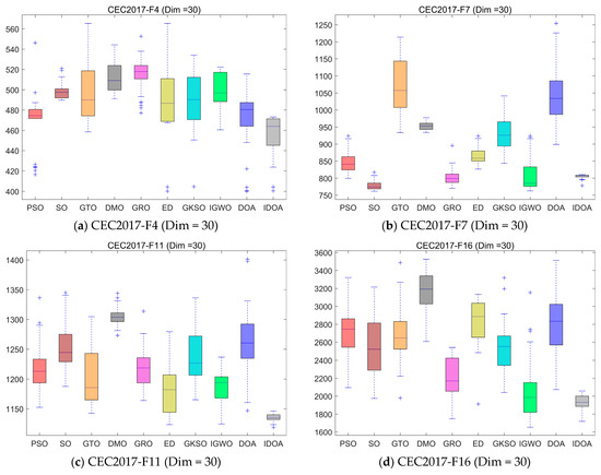 Boxplot analysis for different algorithms on the CEC2017 test set.