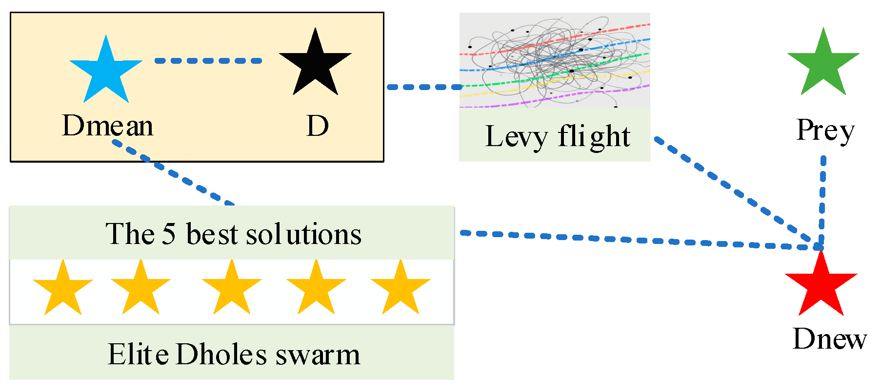 • Propose a sine elite dholes swarm search method based on adaptive factors to enable the algorithm to better utilize the current high-quality solution, rather than being limited to the current optimal solution, thereby enhancing the algorithm’s ability to escape local optima and strengthen its ability to solve high-dimensional complex problems.