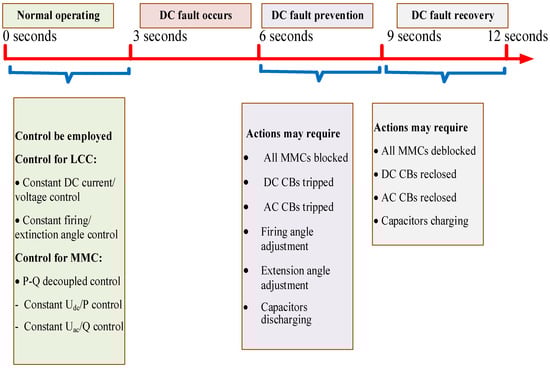 This chronological representation in Figure 15 is constructed in accordance with the new classifications of characterizations associated with DC faults. It illustrates that specific measures are necessitated under conditions of DC faults, and upon the resolution of such faults, alternative measures are mandated.