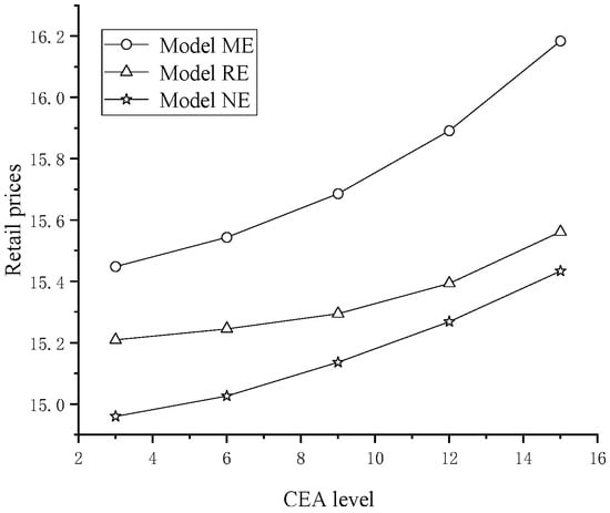 1]. However, given the multifaceted nature of green design, our research results diverge as follows: Firstly, the green design behavior of the manufacturer may not always lead to higher product prices; that is, greening may not always lead to higher prices. Secondly, balanced channel power may not yield a greater capacity to augment the overall supply chain profitability when compared with that dominated by the retailer. Last but not least, an increase in both CEA and the manufacturer’s green design behavior may not contribute to a reduction in the total environmental impact, making green design the least advantageous for retailer-led power structures with regard to total environmental impact.
