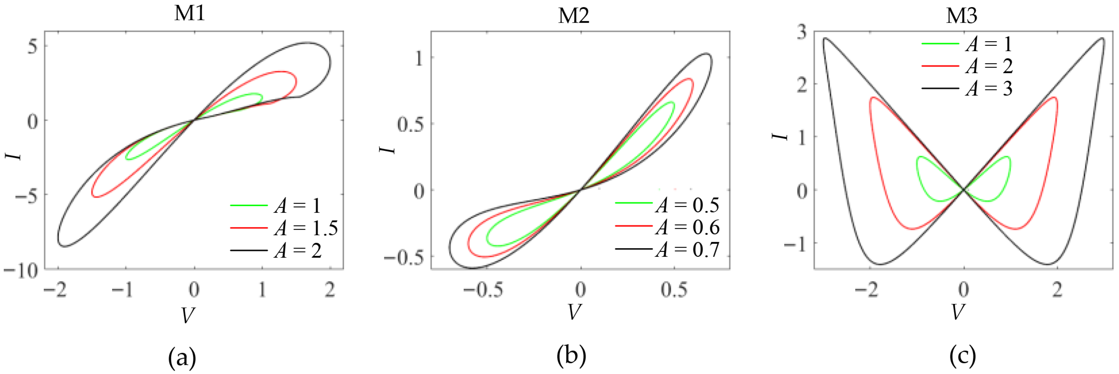 - Ascoli, A.; Corinto, F.; Senger, V. Memristor model comparison. IEEE Circuits Syst. Mag. 2013, 13, 89–105. [Google Scholar] [CrossRef]