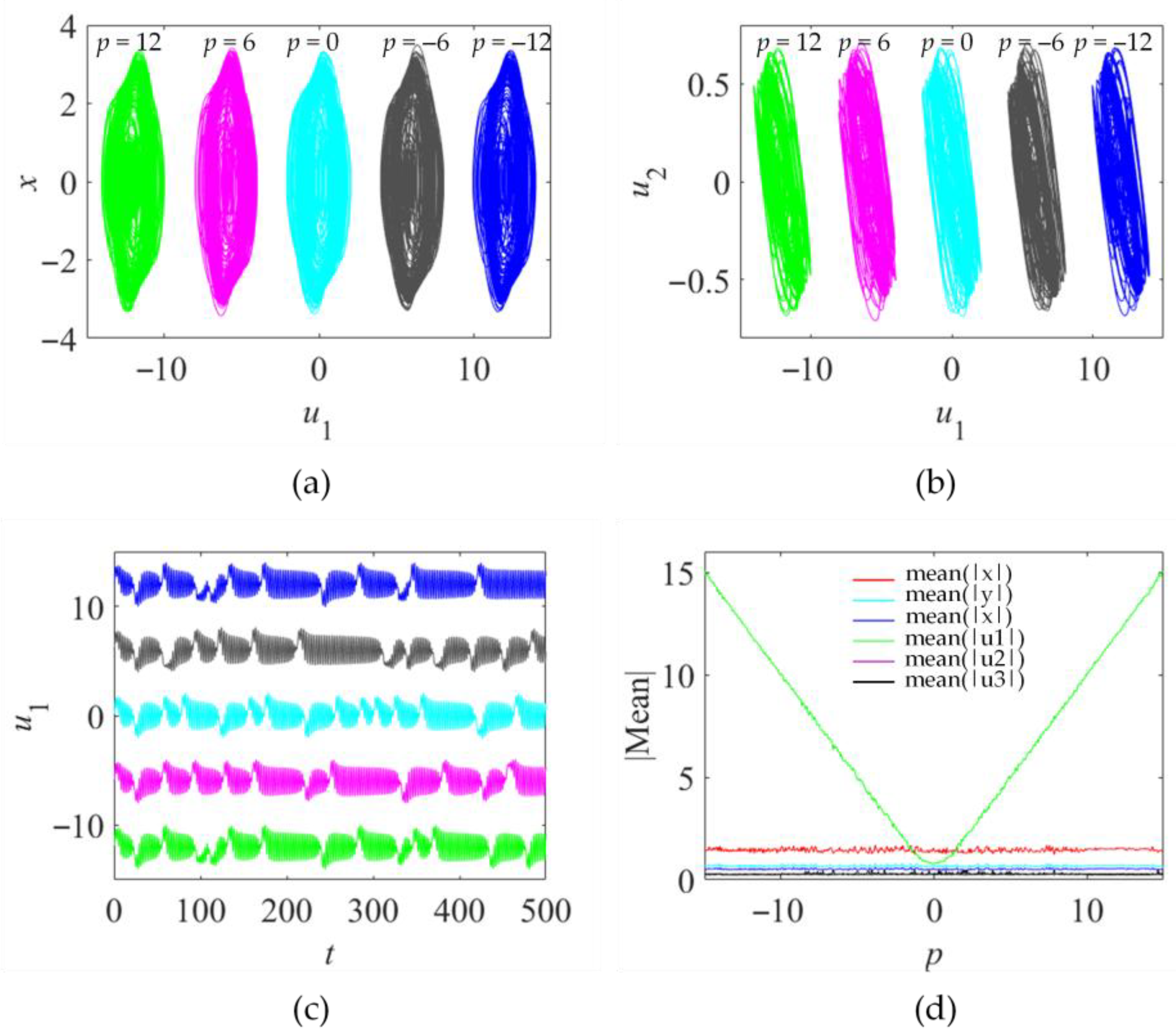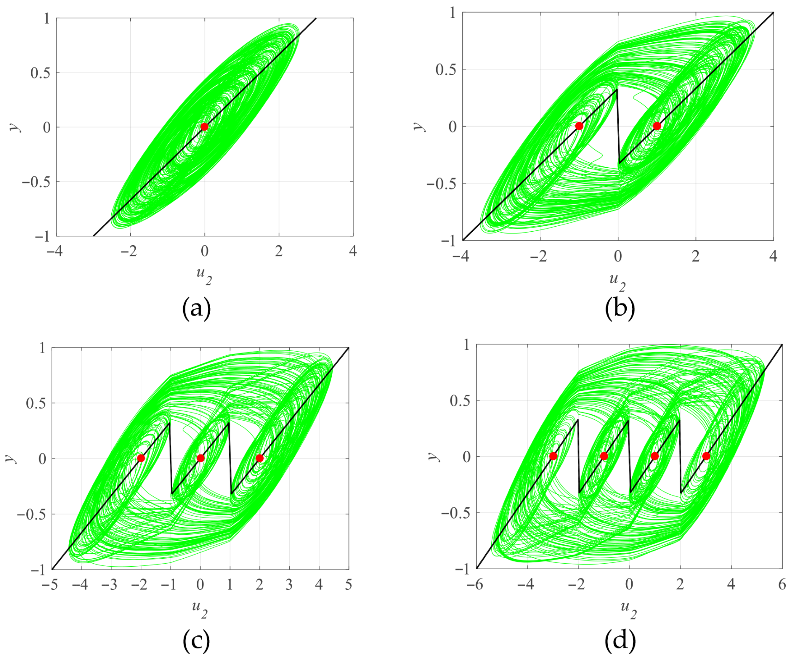 - Zhang, S.; Li, C.; Zheng, J.; Wang, X.; Zeng, Z.; Peng, X. Generating any number of initial offset-boosted coexisting Chua’s double-scroll attractors via piecewise-nonlinear memristor. IEEE Trans. Ind. Electron. 2021, 69, 7202–7212. [Google Scholar] [CrossRef]