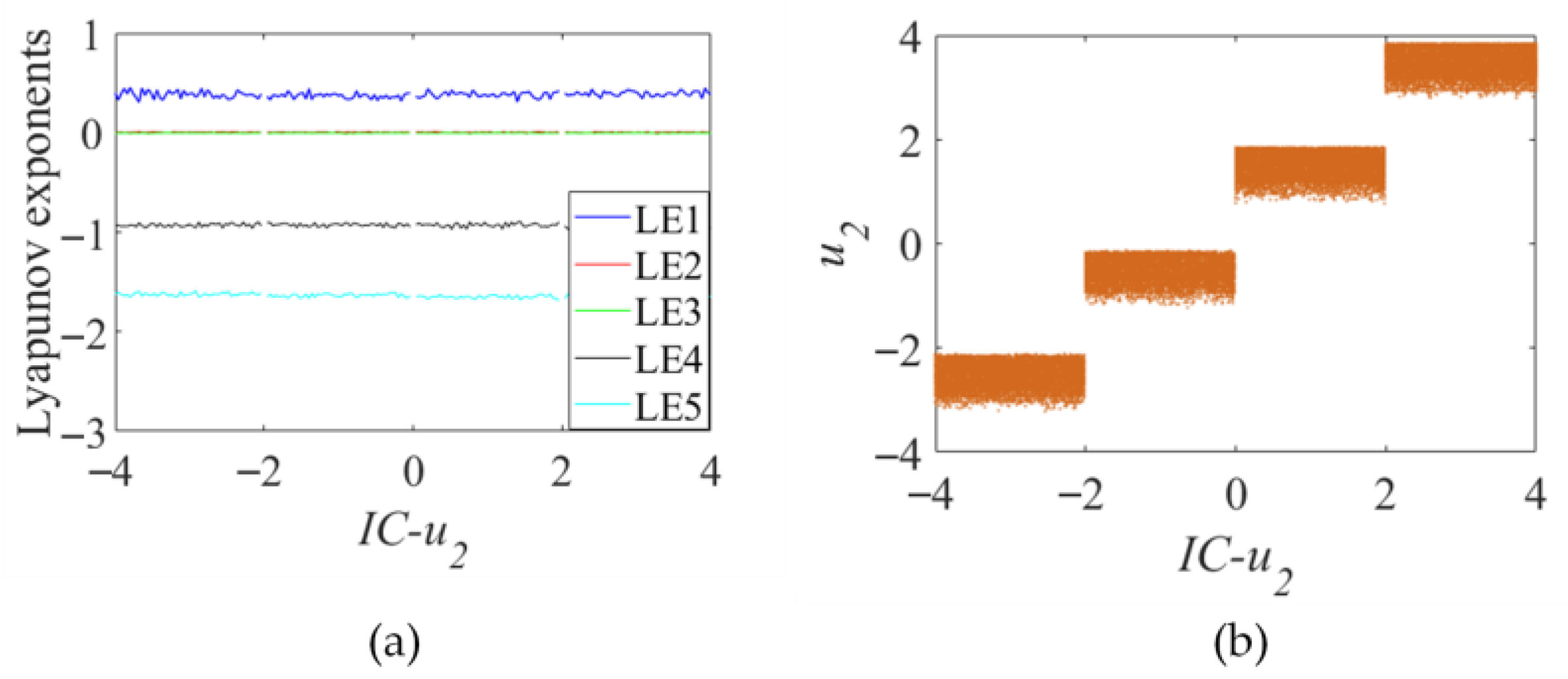 - Wang, M.J.; An, M.Y.; Zhang, X.N.; Iu, H.H.C. Two-variable boosting bifurcation in a hyperchaotic map and its hardware implementation. Nonlinear Dyn. 2023, 111, 1871–1889. [Google Scholar] [CrossRef]