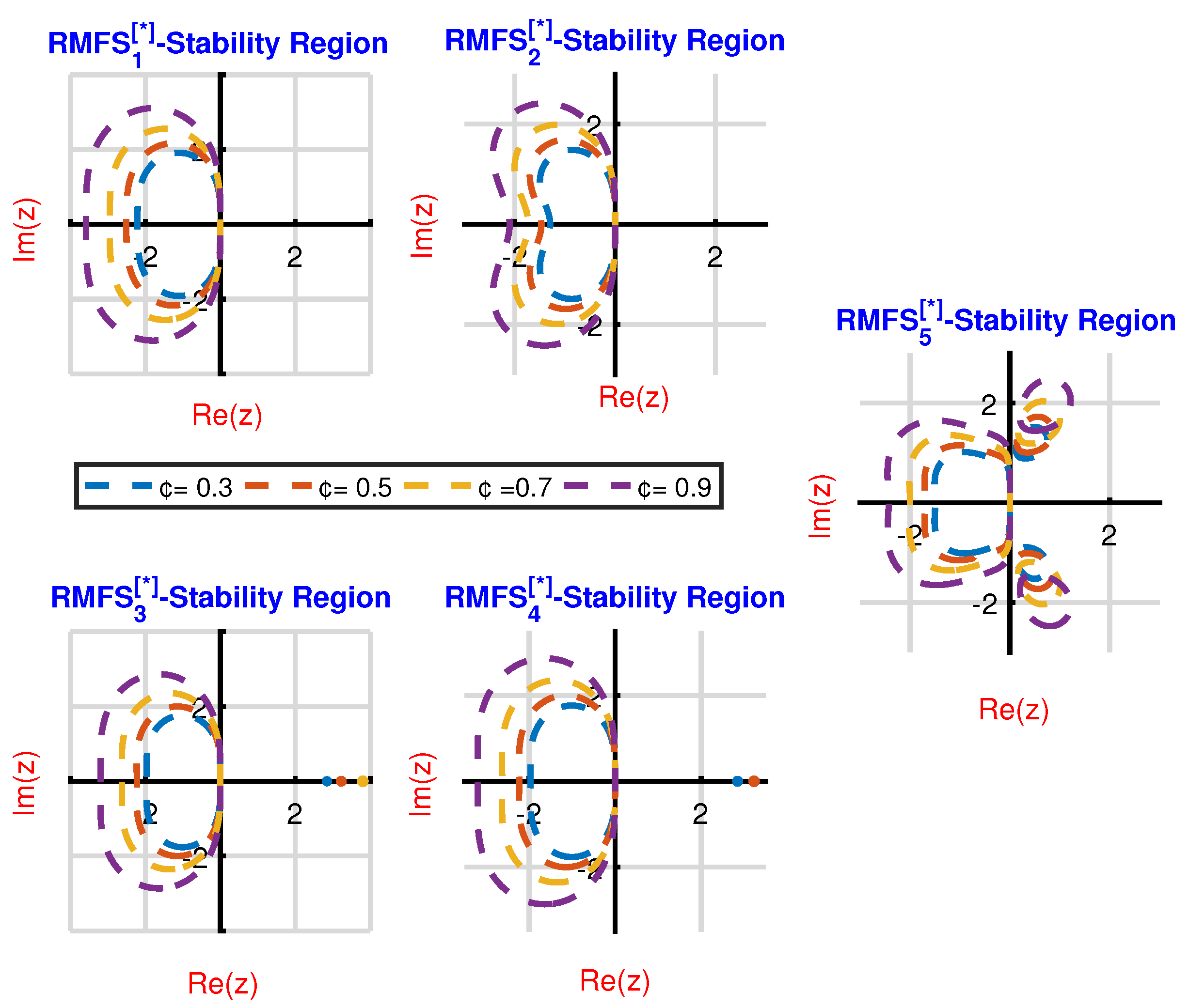 Table 6 shows the error for a fixed step length of 0.1, demonstrating that the newly constructed methods RMFS