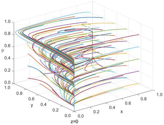 4.3. The Influence of x Initial Value on Evolutionary Equilibrium