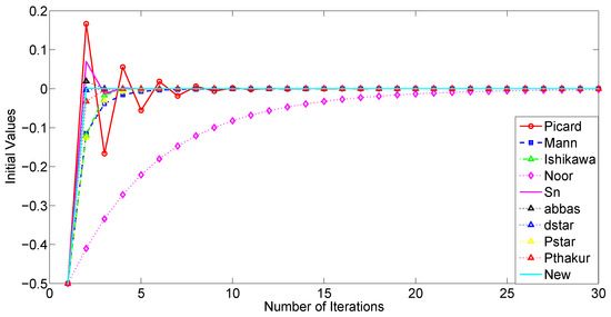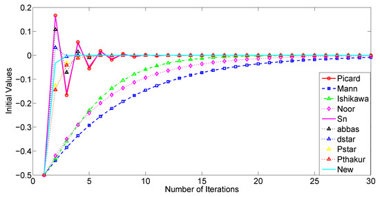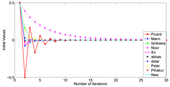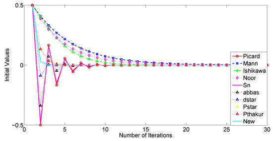 To address this, various iterative procedures have been developed to approximate the fixed points of nonexpansive mappings and their different invariants. The foundational algorithm for nonexpansive mappings include one-step Mann iteration [18] given as follows. Let be an arbitrary point in a closed and convex subset K of a normed space X. Define a sequence in X by