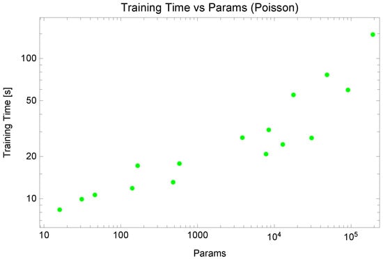 Training time as a function of the number of network parameters (Poisson equation).