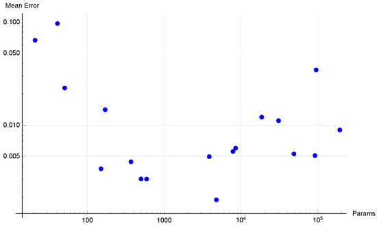 Mean error as a function of the number of network parameters (Poisson equation).