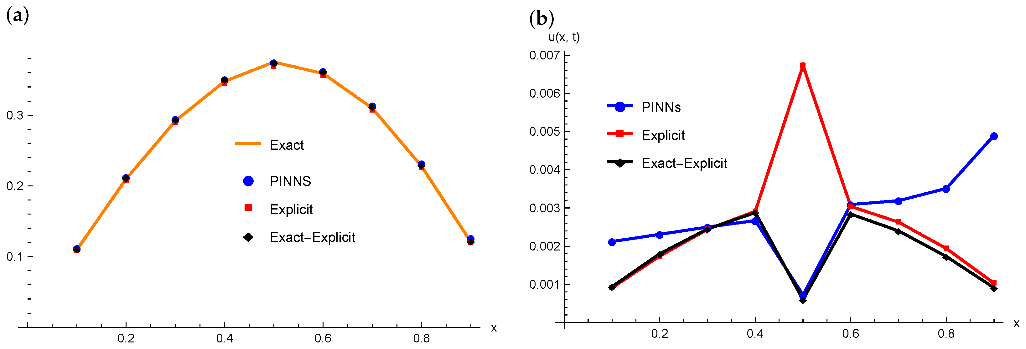 x | Explicit [37] | Exact-Explicit [37] | PINNs | Exact Solution |