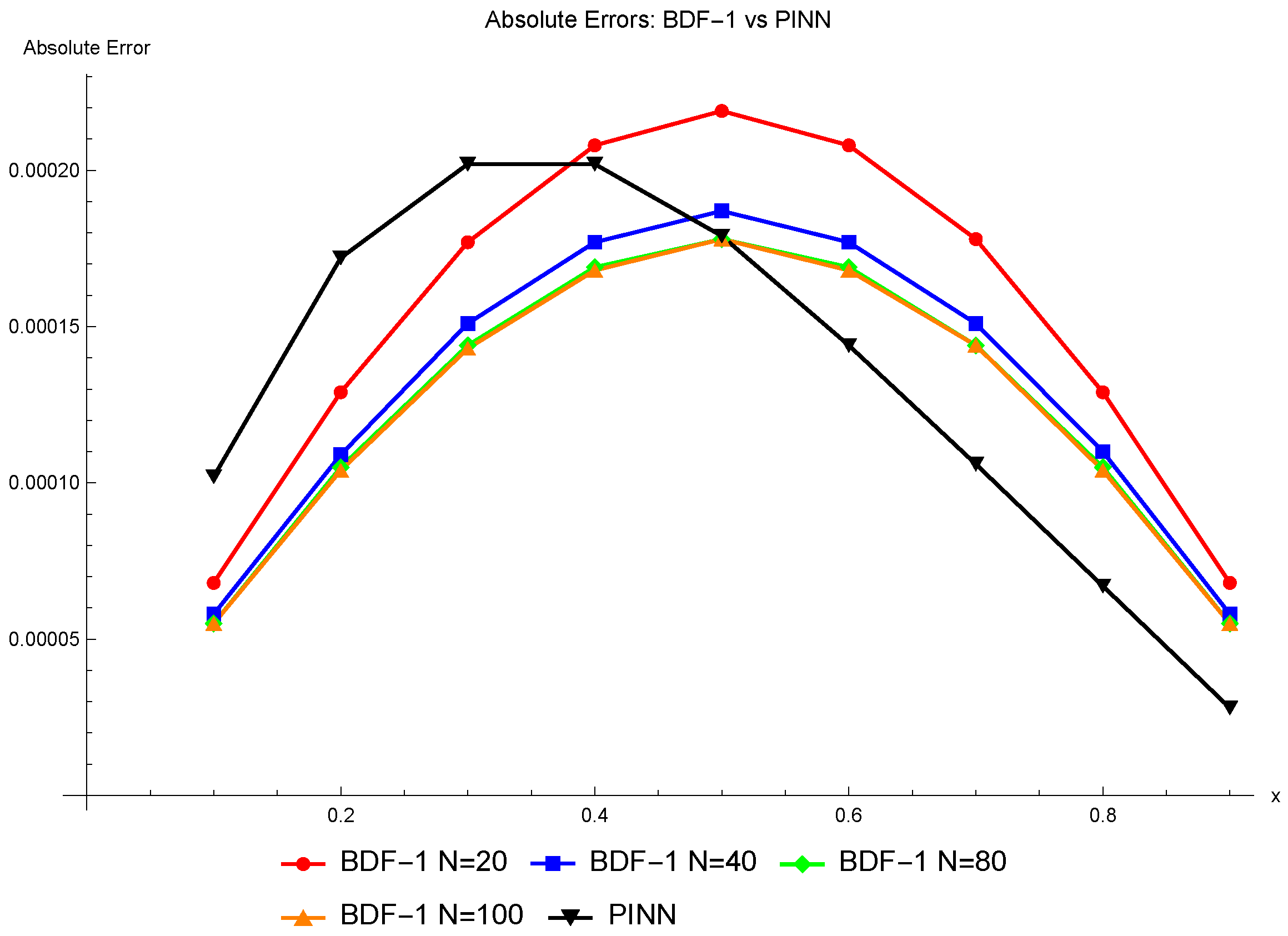 3.2.3. Accuracy Comparison Between Classical Numerical Methods and PINNs