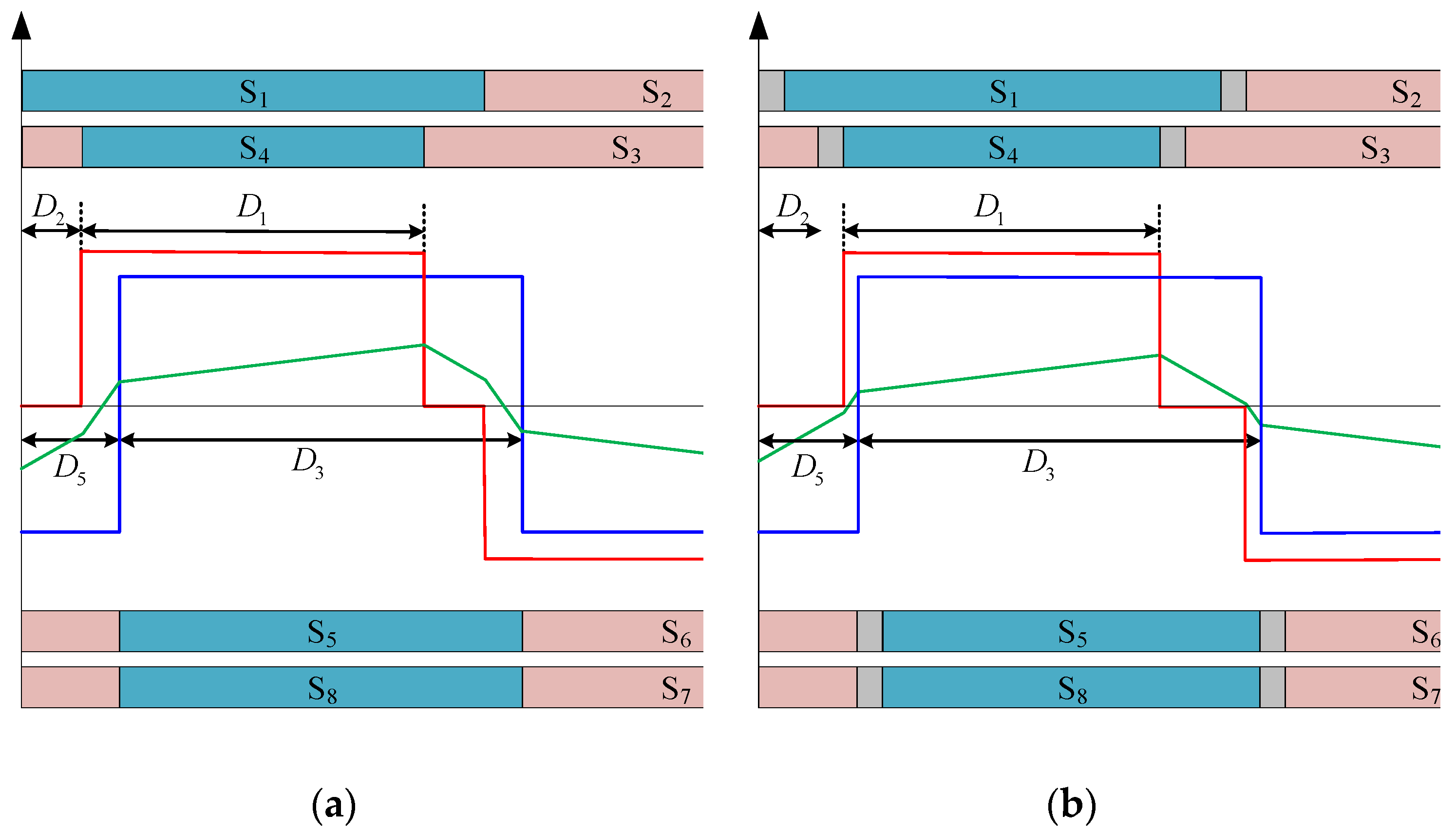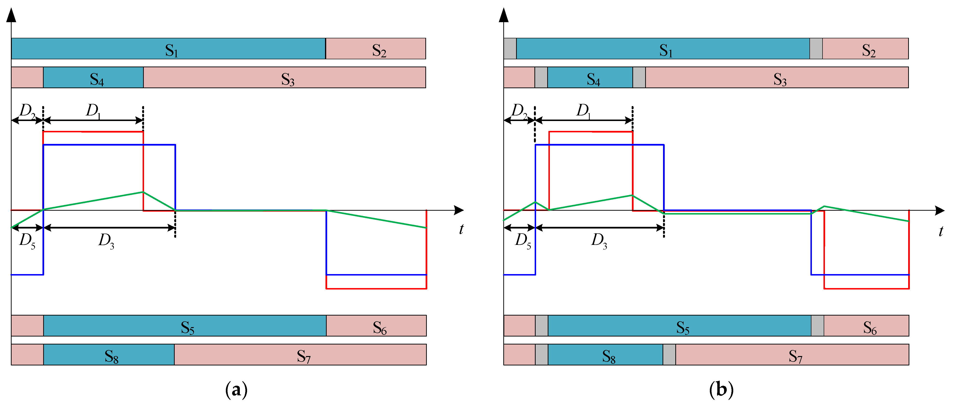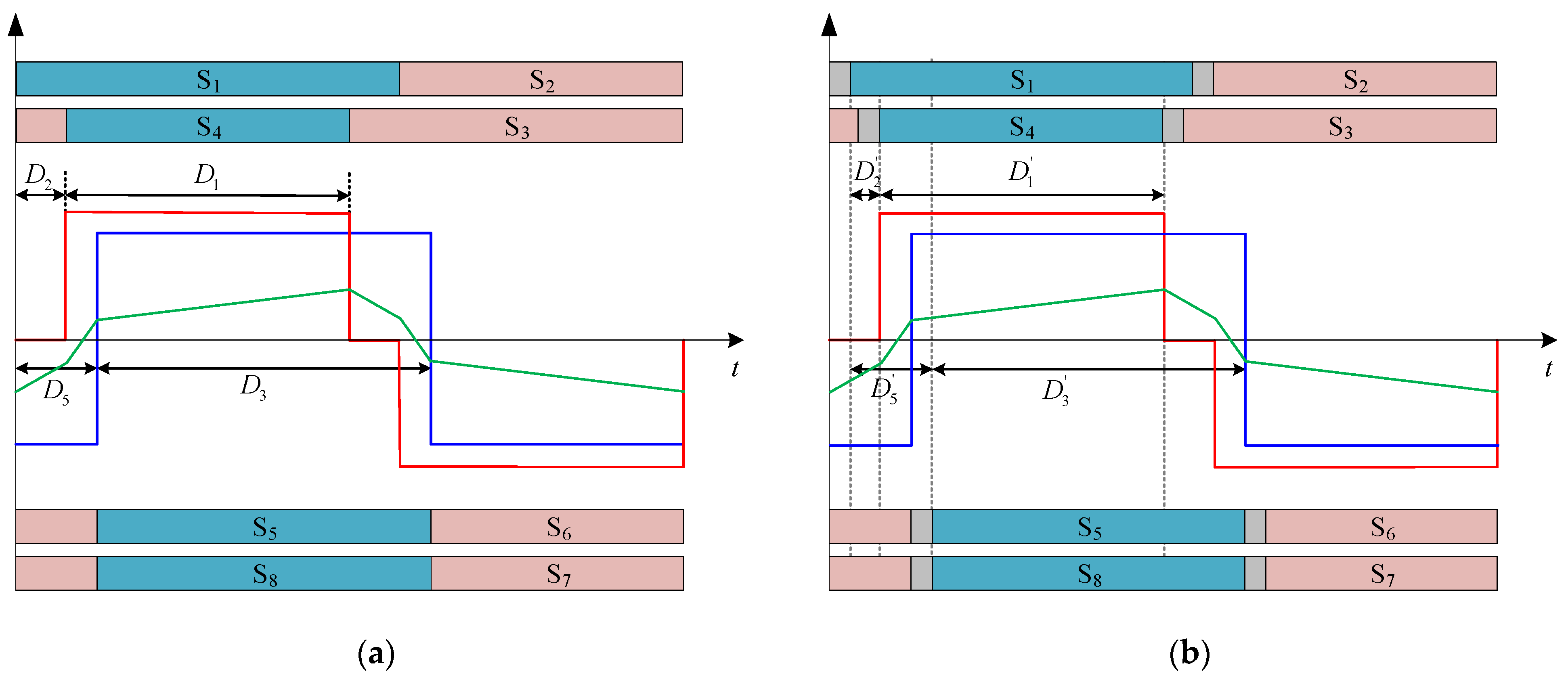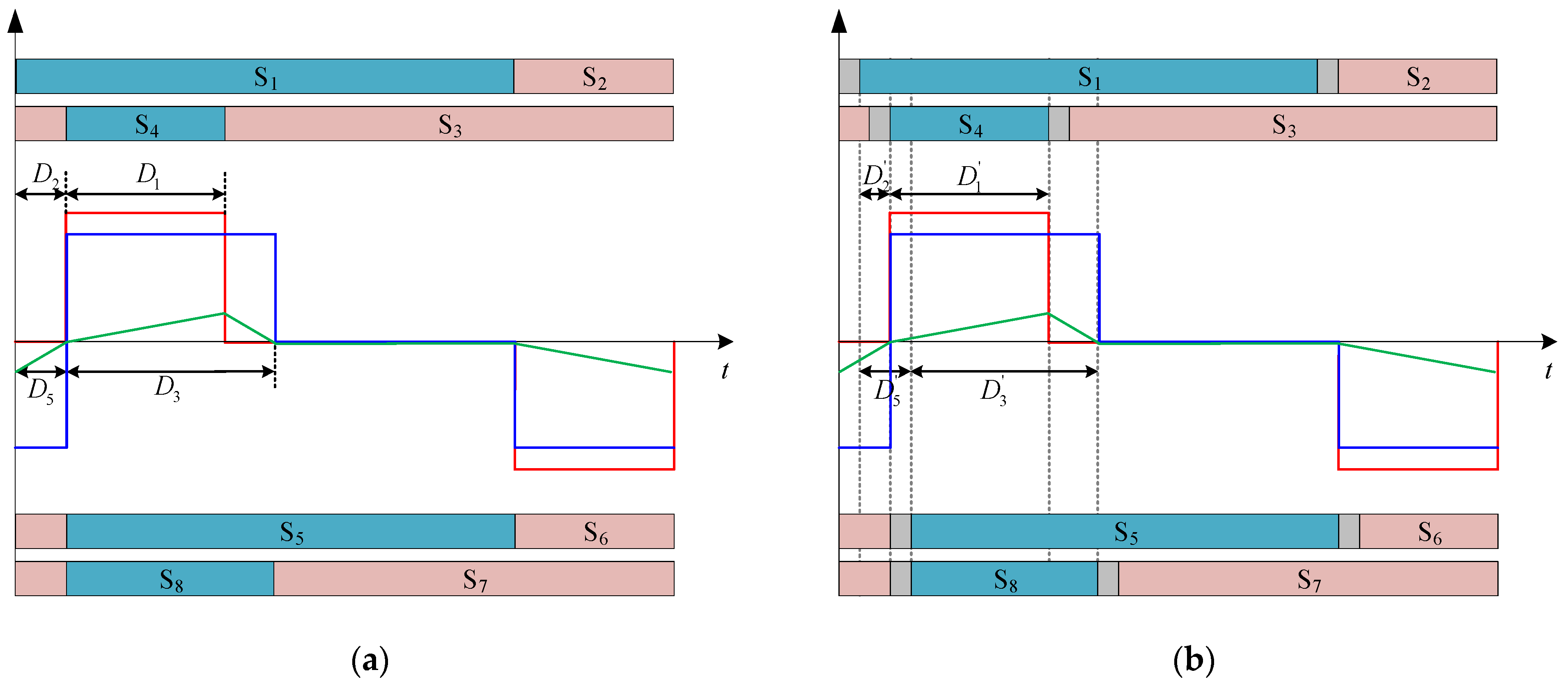 19] clarify the dead-time effect and its generation mechanism for different modulation strategies, and revise the power transmission model after the addition of dead time. However, their limitation is that they do not propose a method to eliminate the dead-time effect. To address voltage distortion, References [
