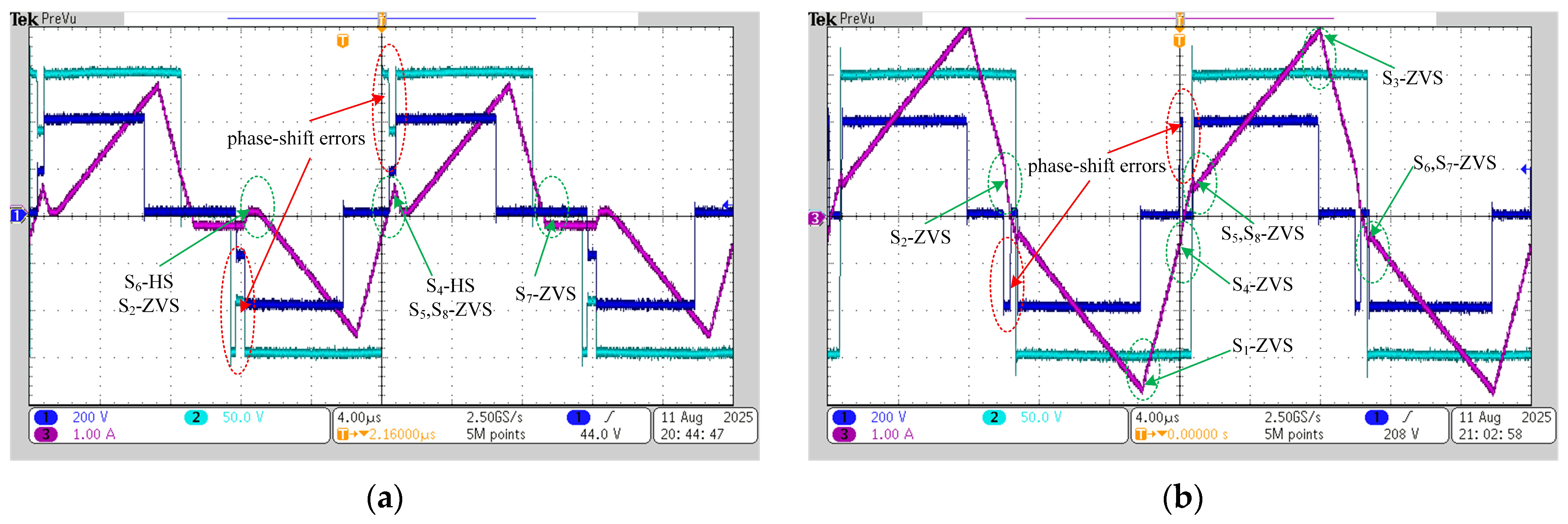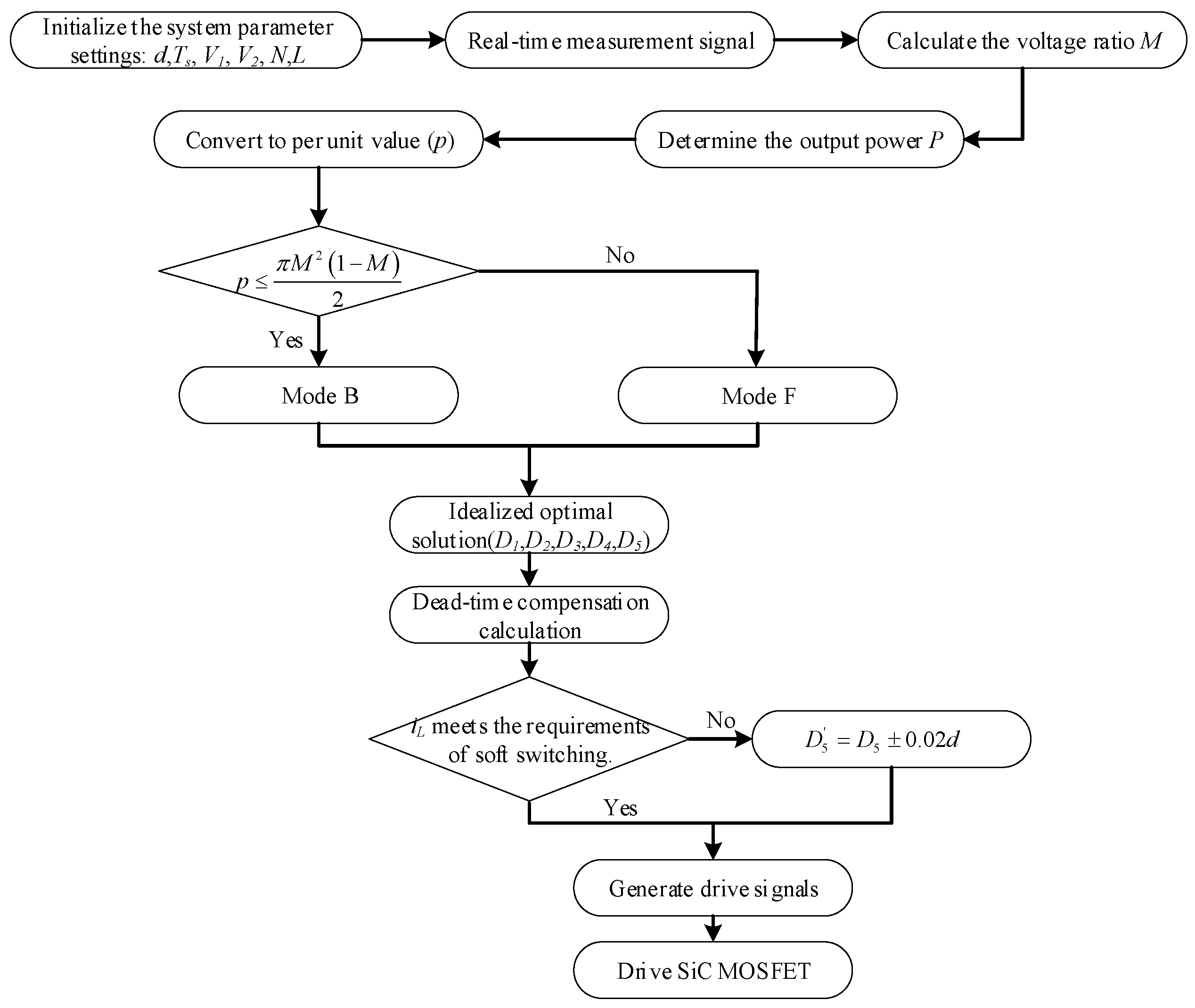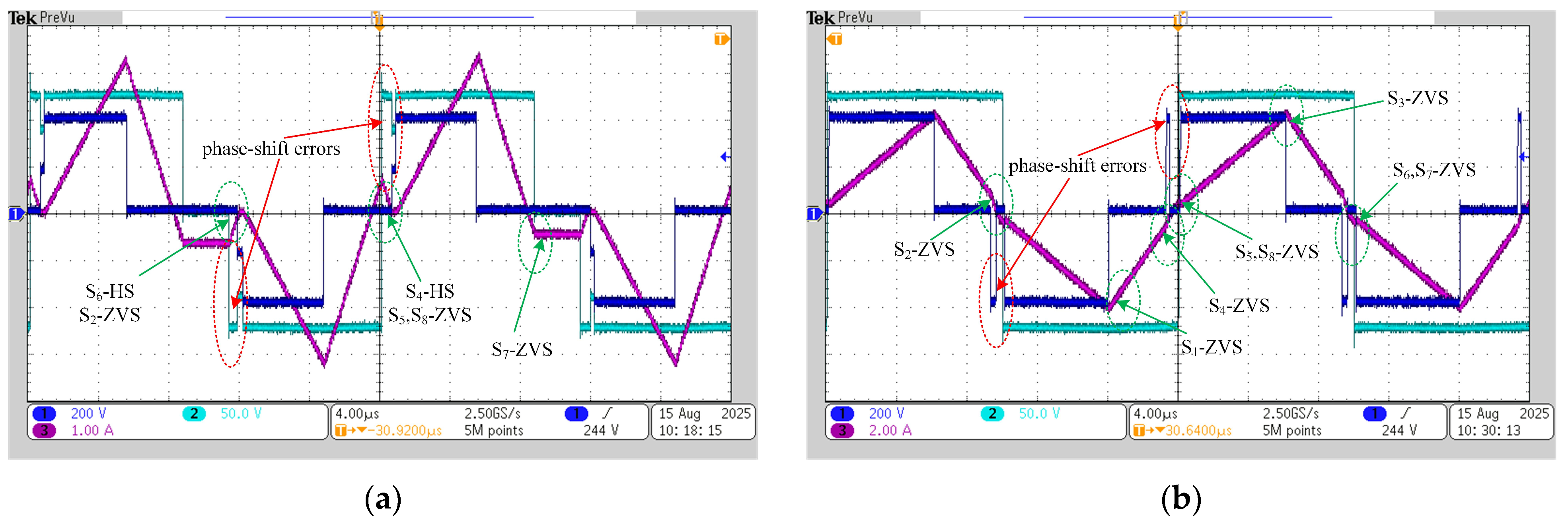 28] compensates for the dead time from the perspective of trigger pulses. The compensated converter achieves soft switching and optimization of current stress, but the proposed compensation method narrows the range of transmitted power. Reference [
