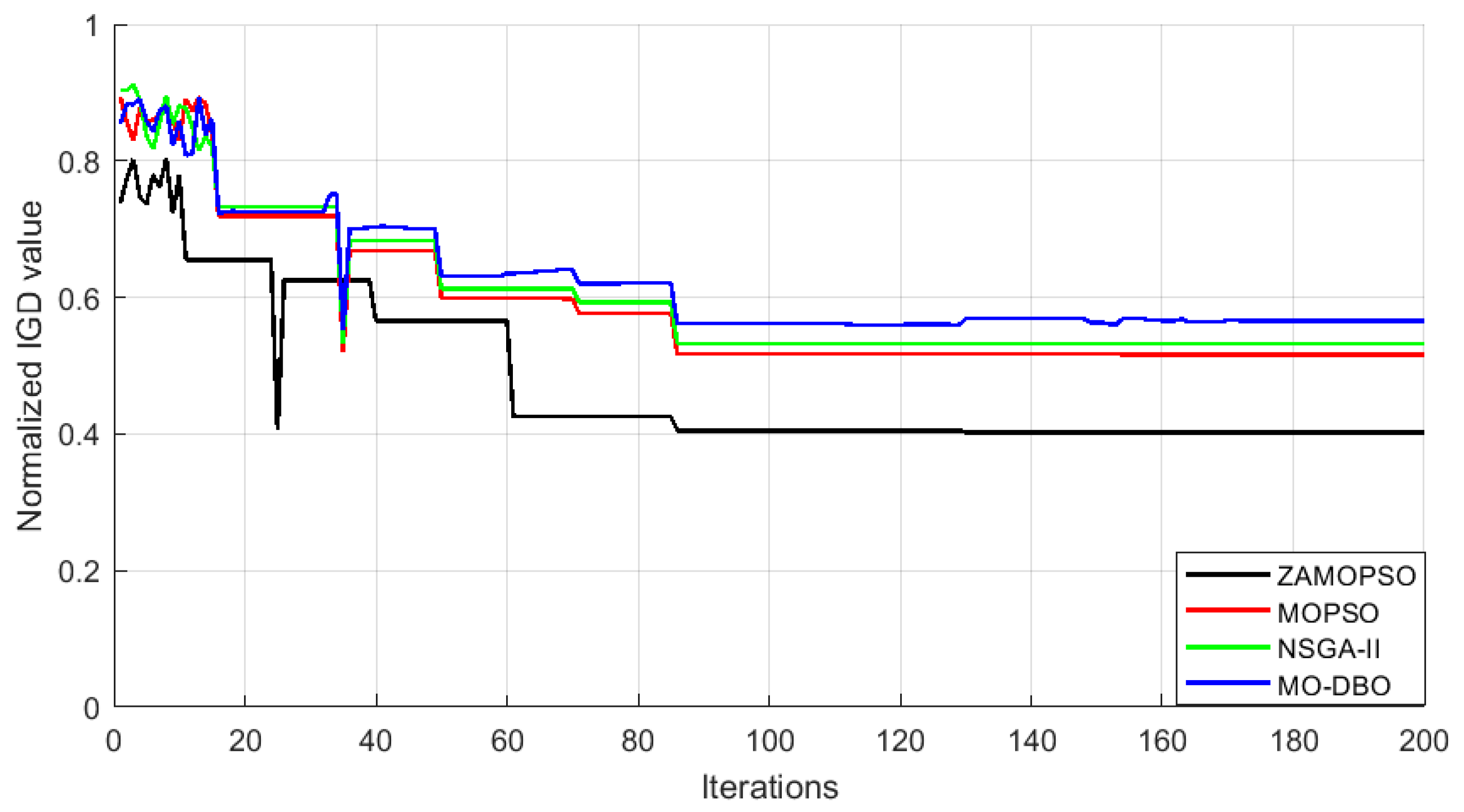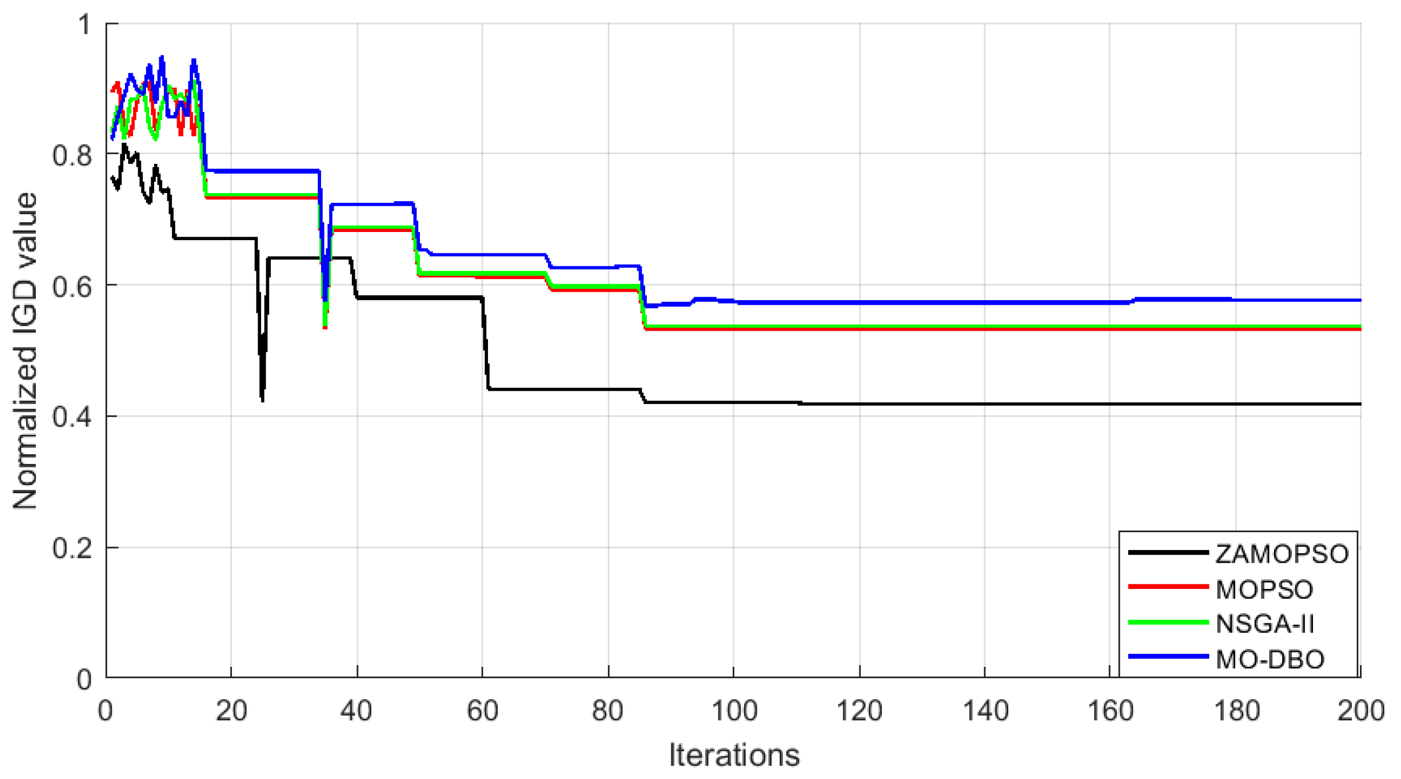 Although this study does not formally prove that ZAMOPSO converges to the Pareto front, previous research has shown that, under certain conditions, PSO-based algorithms can asymptotically converge to stable points or approximate the Pareto front [