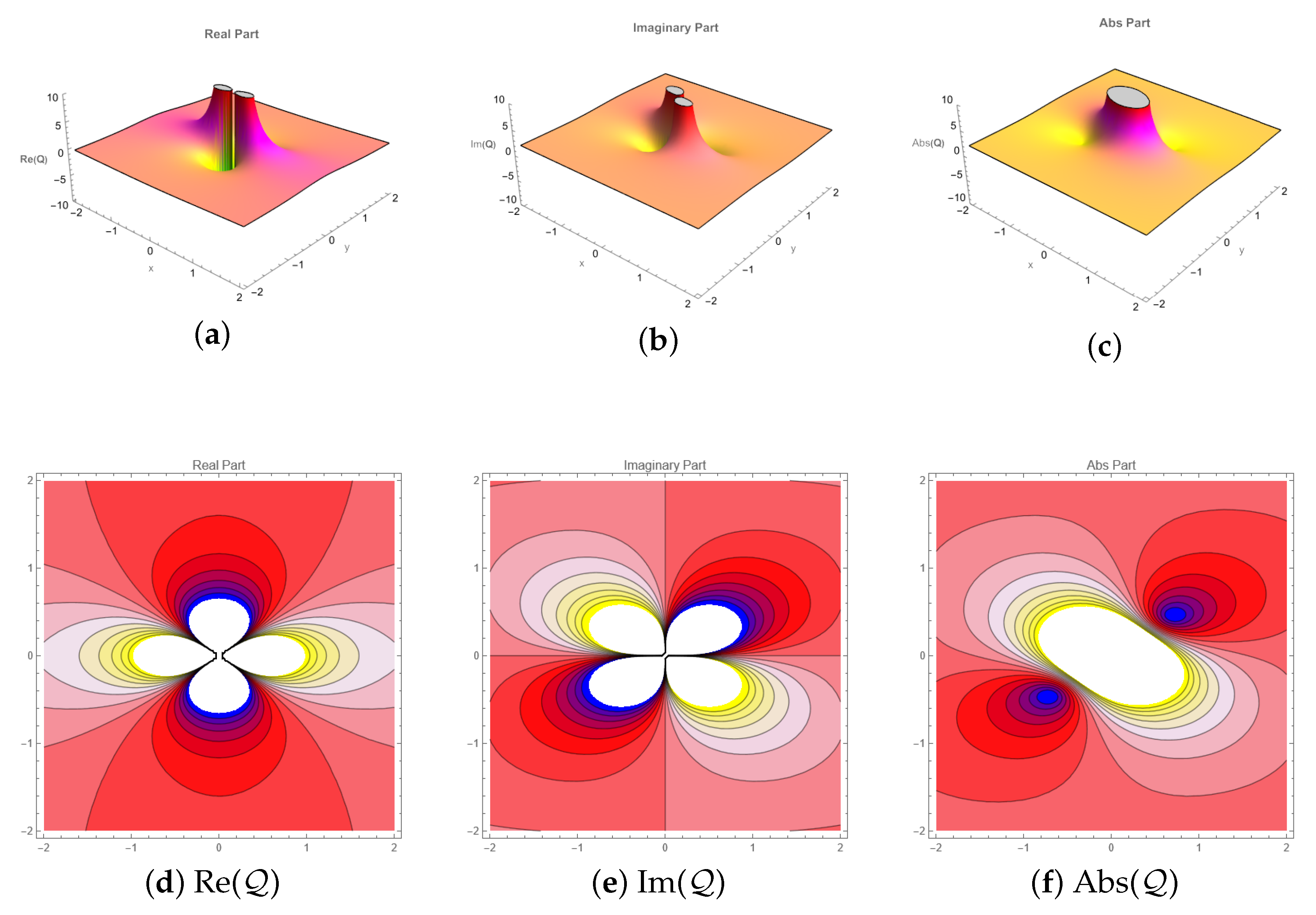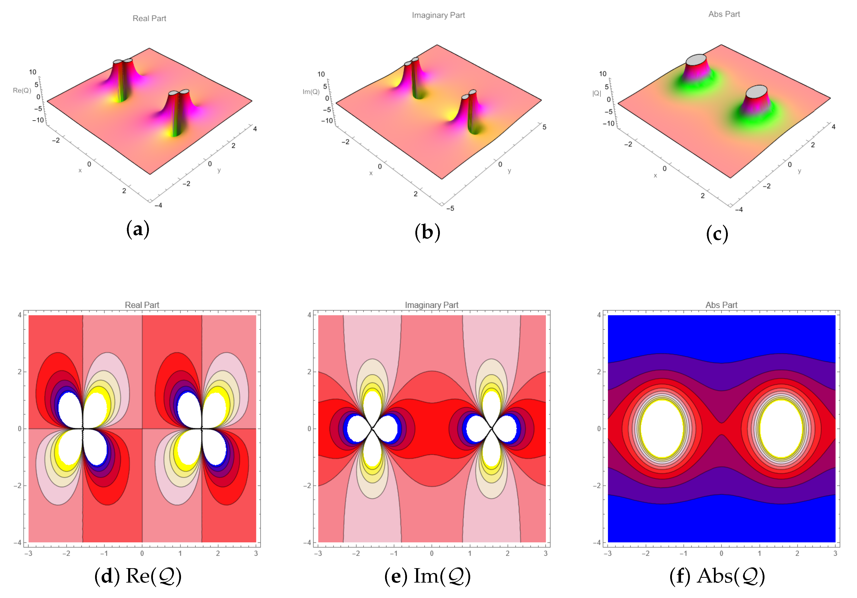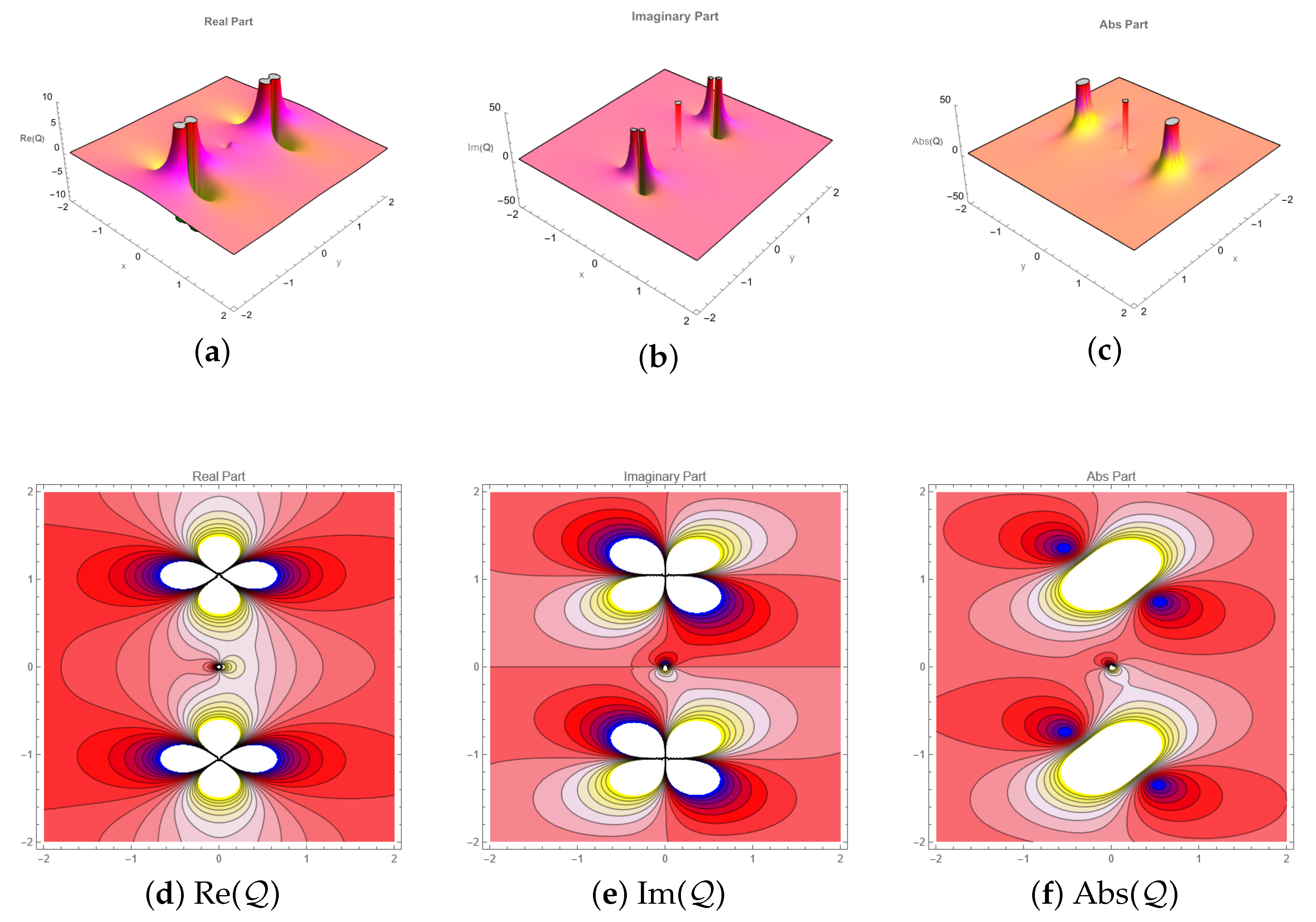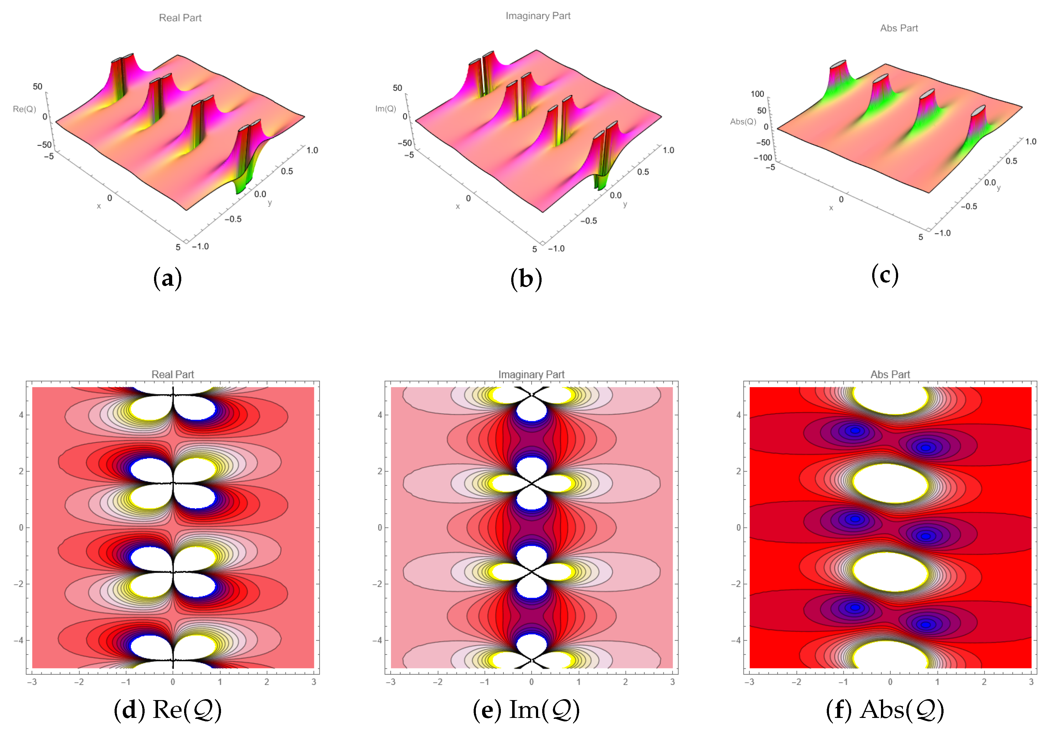 - Step 01: The solution of Equation (89) is obtained through the MGERIF approach as outlined below.within this formulation, , , (with j = 1, 2, …, N) represents arbitrary constants, whereas the function is introduced asThe coefficients and exponents (i = 1, 2, 3, 4) act as free parameters in the solutions. By assigning specific values to these parameters, Equation (91) can be expressed in several known functional forms, as summarized in Table 3.