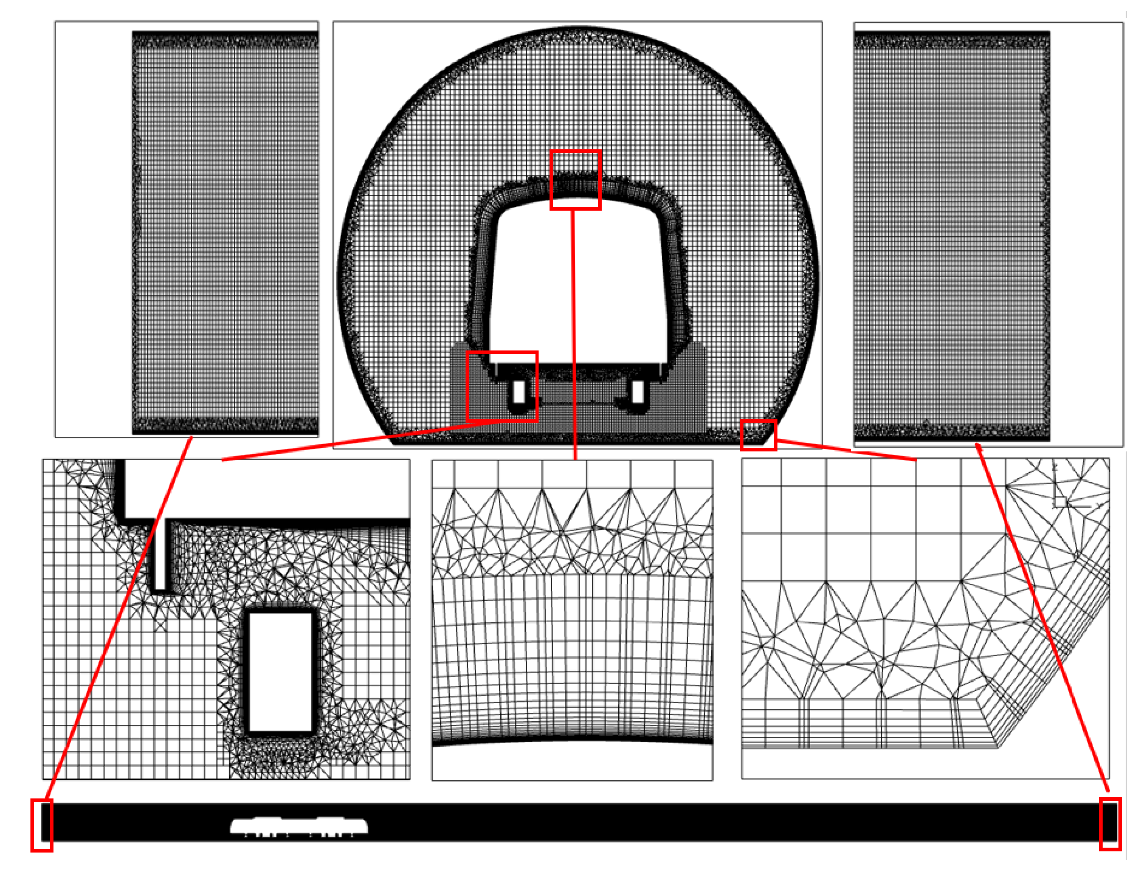 - Du, J.; Fang, Q.; Wang, J.; Wang, G. Influences of high-speed train speed on tunnel aerodynamic pressures. Appl. Sci. 2021, 12, 303. [Google Scholar] [CrossRef]