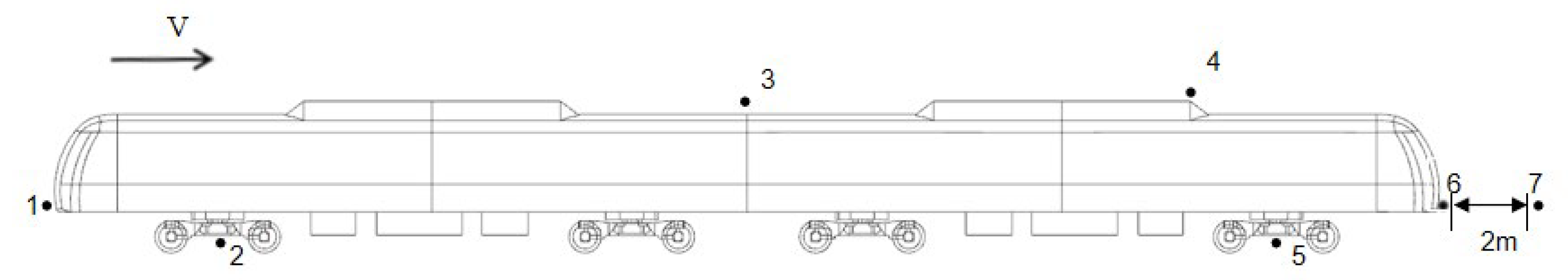 - Yan, L.; You, T.; Yang, Z. Numerical simulation on aerodynamic noise of 120 km/h metro train. Electr. Drive Locomot. 2022, 26–30. [Google Scholar]