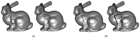 Comparison of 3D text ‘B’ generation on the Bunny model using (a) Boolean operations and (b) our method.