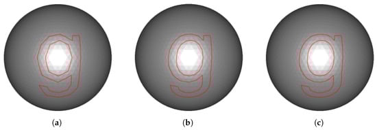 Comparison of the sampled curves of character ‘g’ on a sphere using (a) two, (b) three, and (c) four samples per curve.