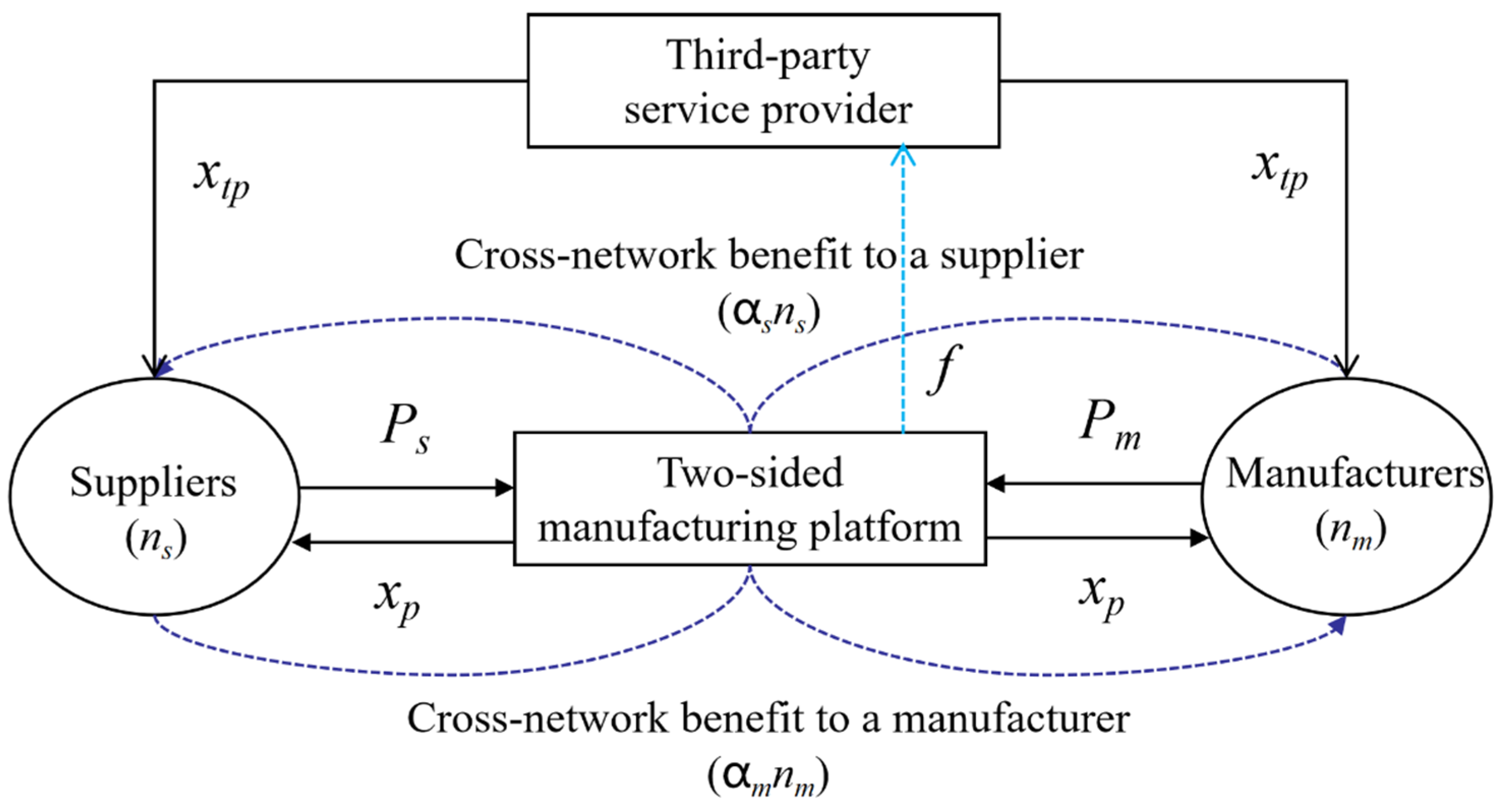 Exemplifying a bilateral market structure that integrates suppliers and manufacturers, the two-sided manufacturing platform exhibits a distinct market characteristic, that is, the cross-network externality symmetry, which refers to the correlation and mutual influence of joining utility between suppliers and manufacturers [