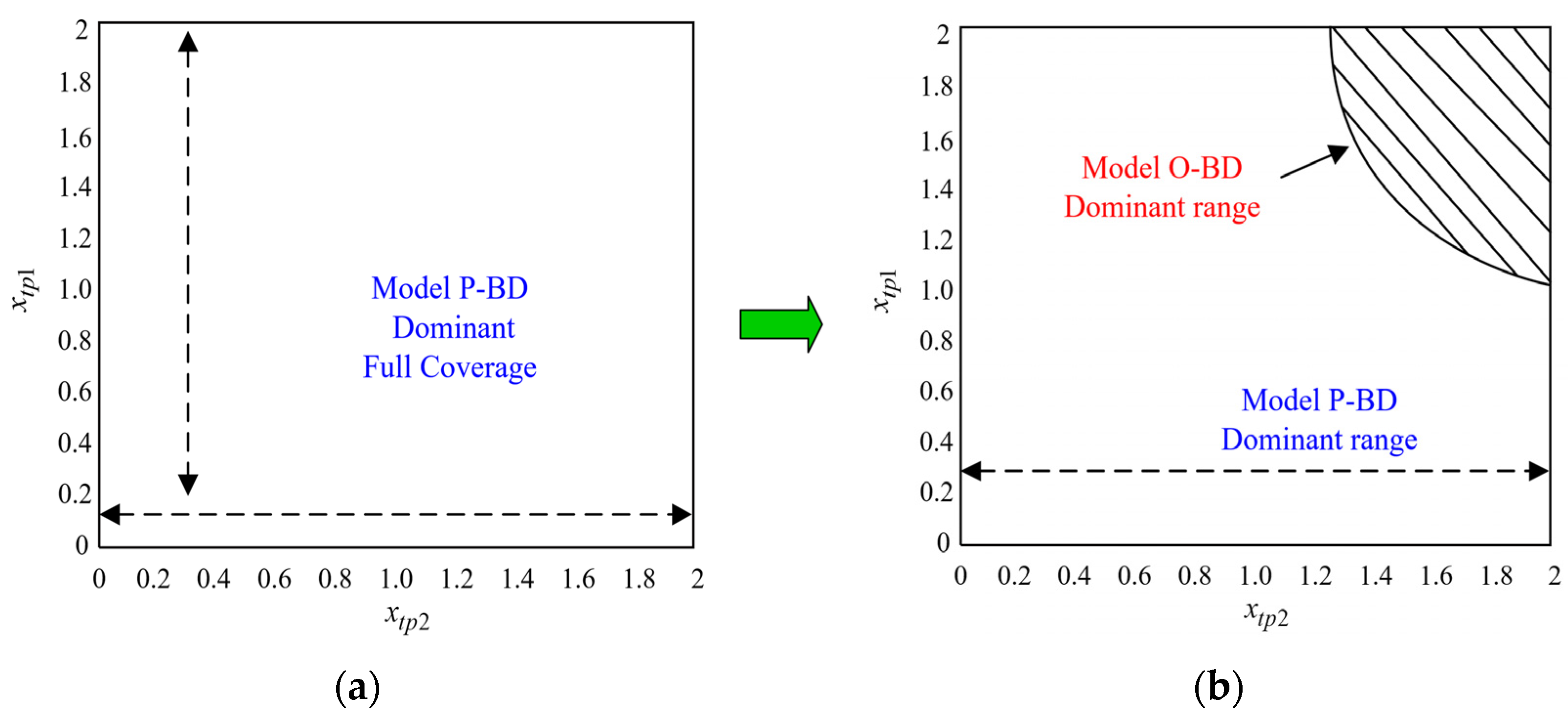 Remark 1. When considering the bilateral differentiated VAS strategy, the main results of the platform’s VAS provision strategy choice in the basic model also hold. The platform should implement Model P-BD so long as the outsourced VAS cost coefficient is high. Otherwise, the platform should implement Model O-BD only when the outsourced VAS cost coefficient is low and the VAS level is a high range.
