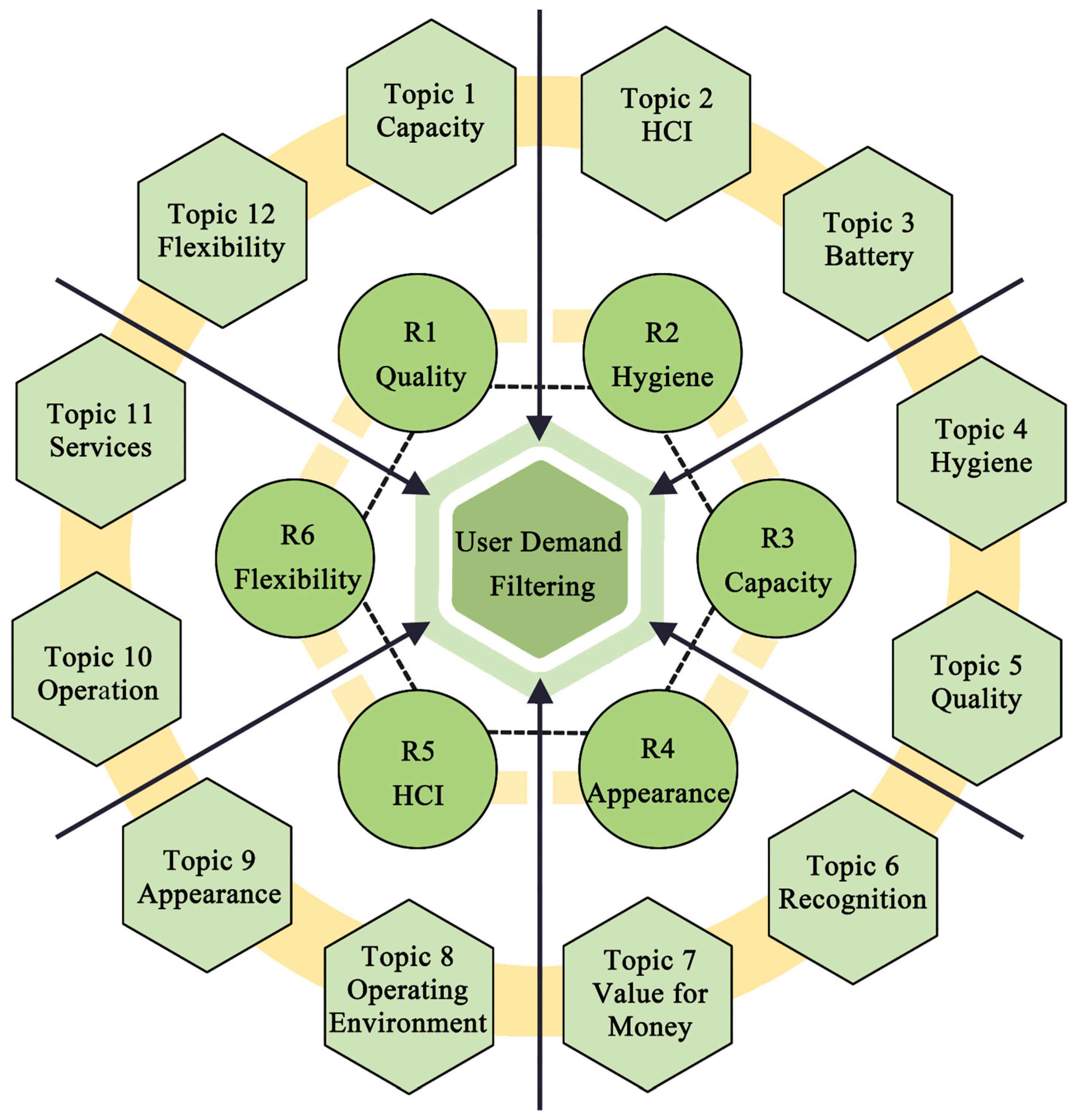 In iterative product design, the relationships among potential user needs need to be fully considered. Decision-making trial and evaluation laboratory (DEMATEL) is often used to analyze the correlations among metrics [