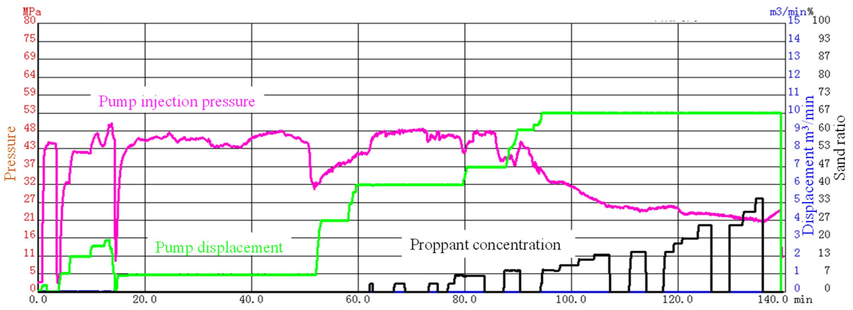 4.1. Fracturing Monitoring Results for Section 1