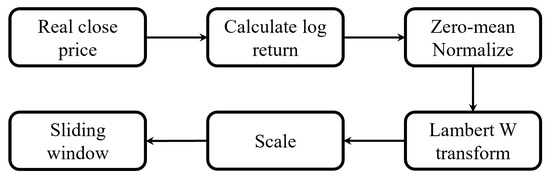 - In order to resolve the contradiction between the model’s generative capabilities and the heavy-tailed nature of financial data, the standardized data is further processed using the Lambert W transformation [27].
