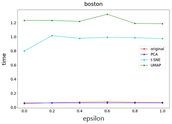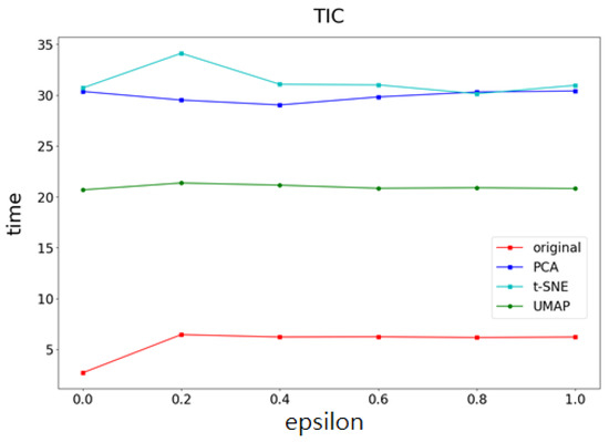 - Changes in computational time of the t-SNE, UMAP, and PCA methods on datasets with different features and data amounts.